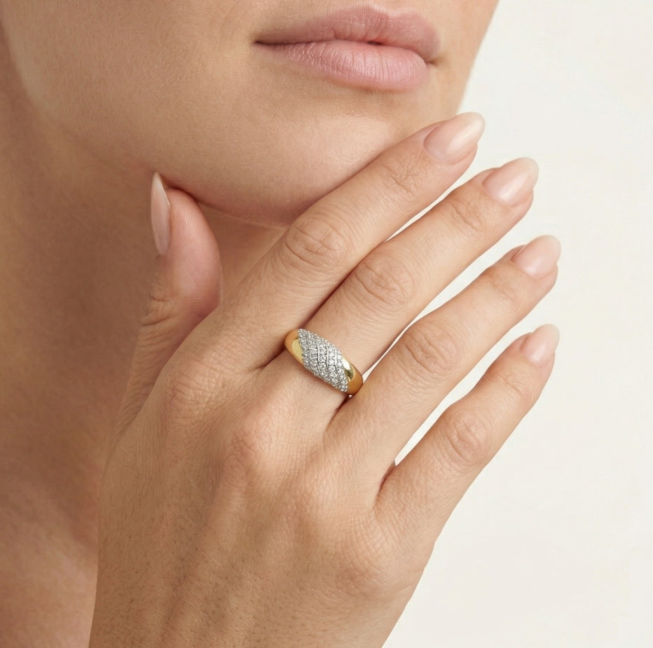 Prsten s kubickými zirkony ze žlutého a bílého zlata