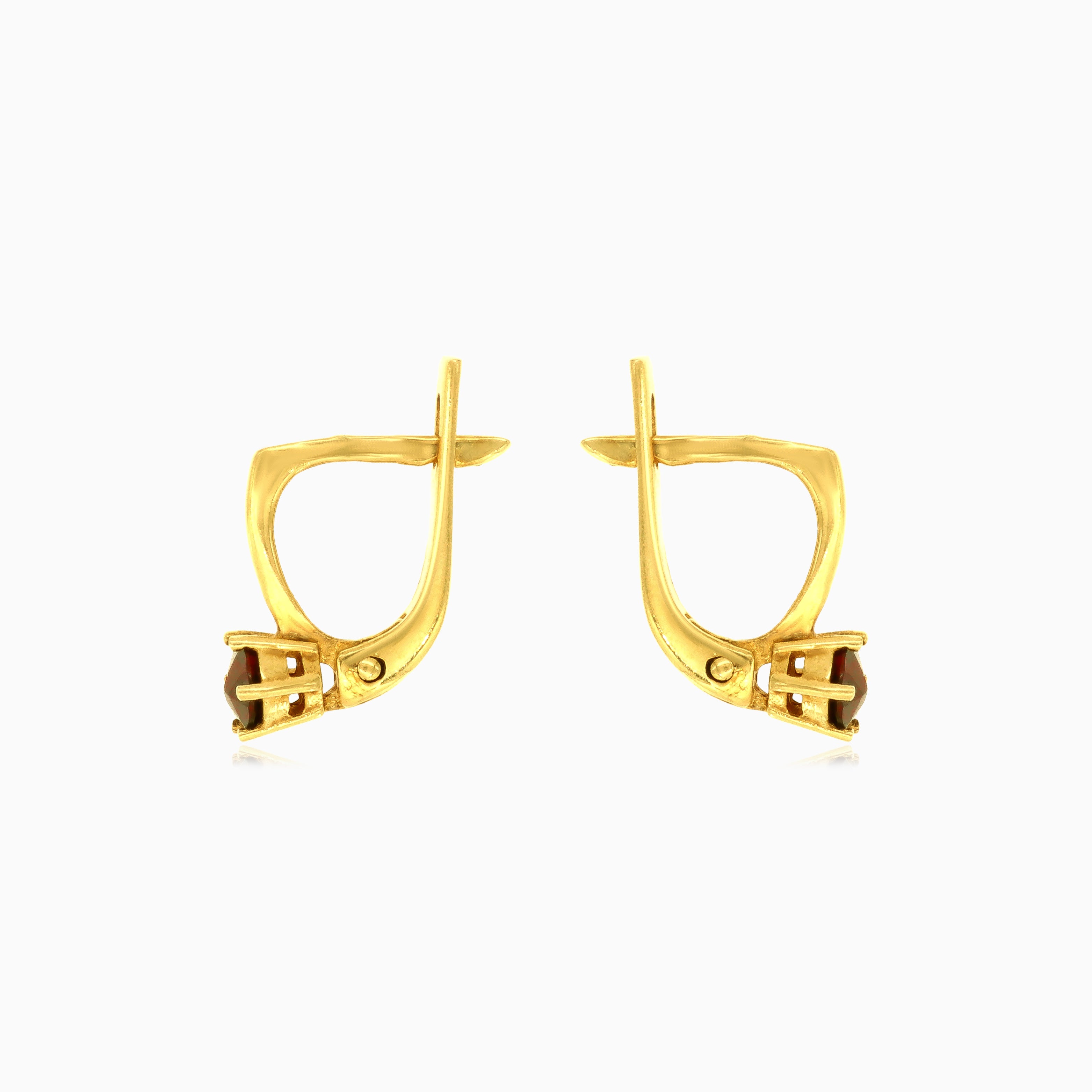 Vylepšete svůj styl těmito náušnicemi ze 14kt žlutého zlata s kulatým granátem jemného krokového brusu, který je zasazen ve stylovém 6paprskovém afroháčku. Bezpečné zapínání na patentku zajišťuje pohodlí i sofistikovanost a činí z těchto náušnic nadčasový doplněk vaší sbírky.