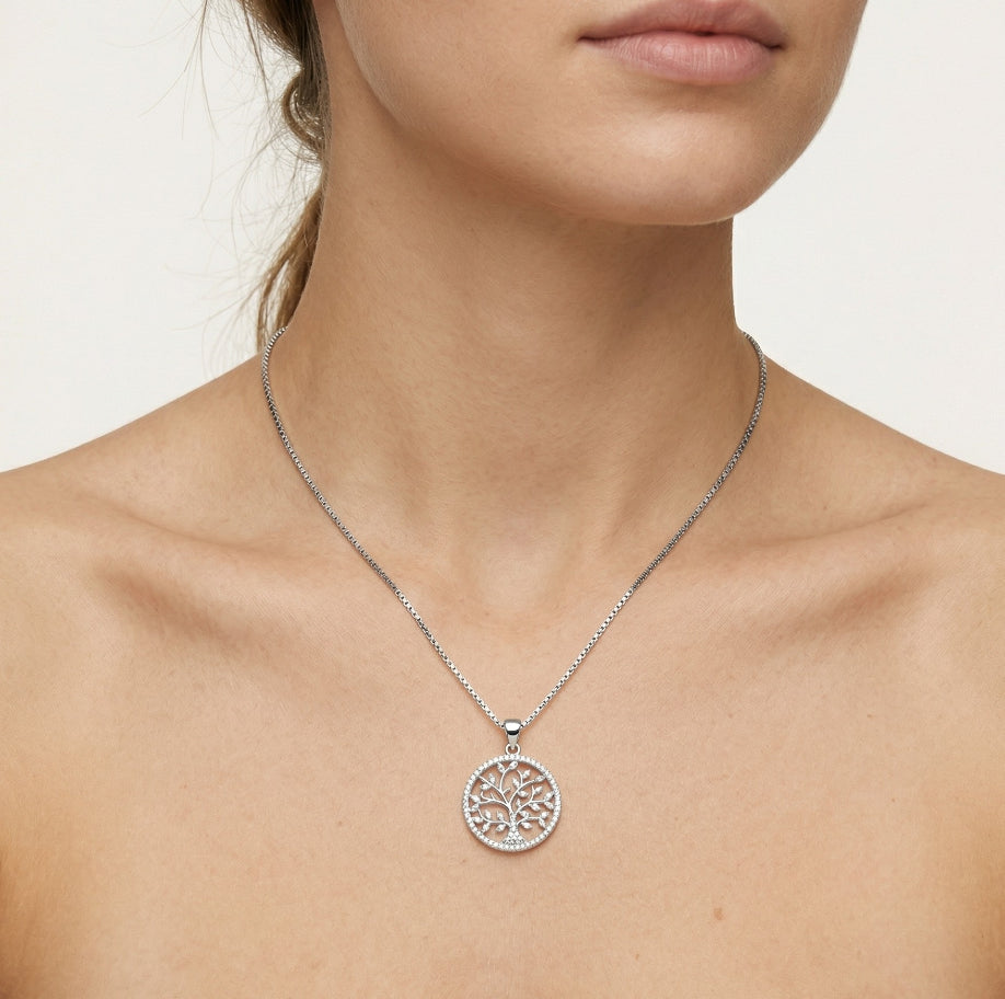 Tento kouzelný až magický přívěsek je vyroben z mincovního stříbra a je doplněn drobnými kubickými zirkony briliantového výbrusu, které jsou zasazeny do šperku pomocí techniky haló. Zirkony se nachází nejen na rámečku přívěsku, ale také na samotném stromu života v oblasti kmene a listů. V ceně šperku není zahrnut řetízek.