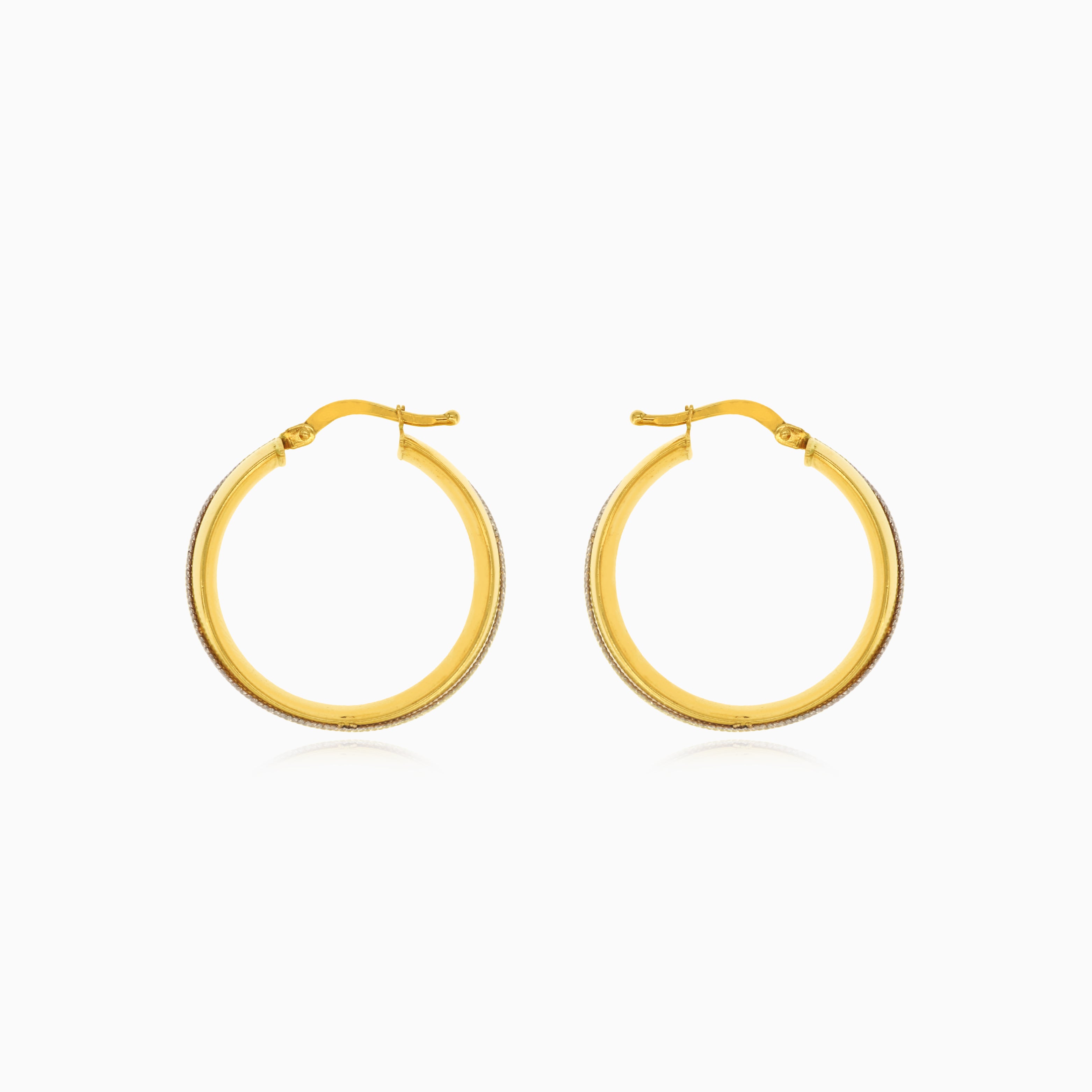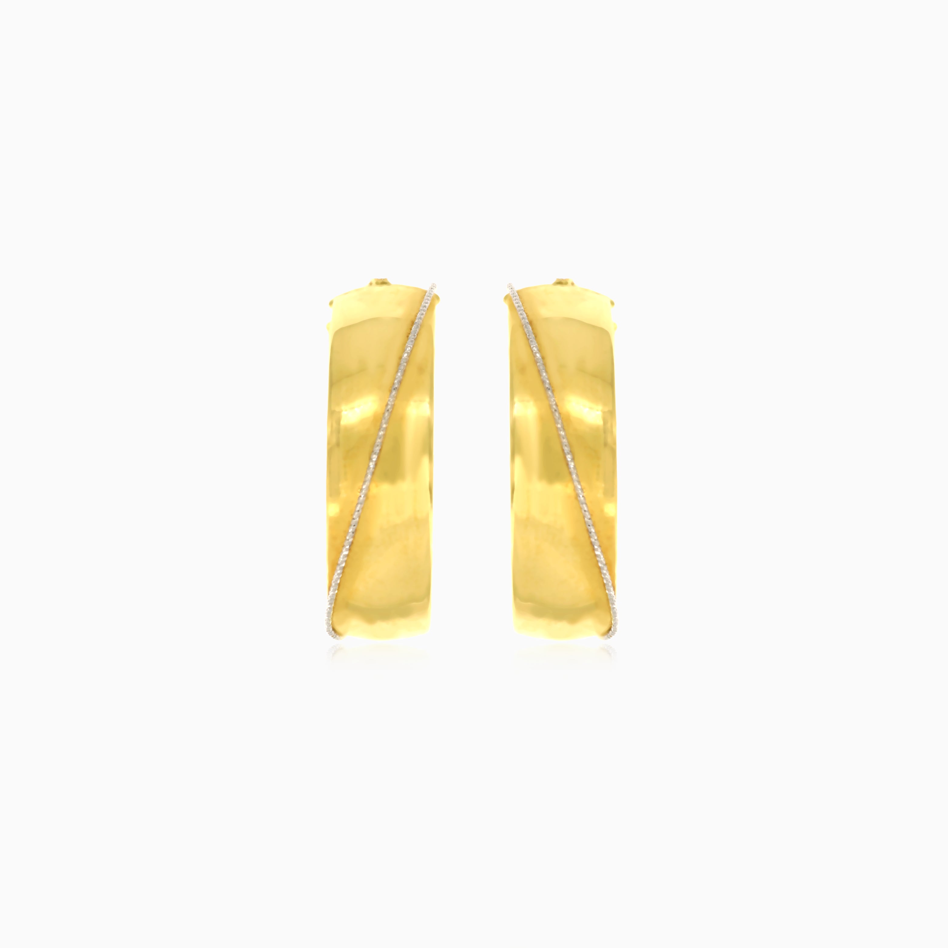 Tyto elegantní kruhové dámské náušnice jsou vyrobeny ze 14karátového žlutého zlata, mají elegantní diagonální linii z bílého zlata a bezpečné zapínání na francouzský zámeček, takže působí stylově a bezpečně. Skvěle se hodí pro dodání nádechu sofistikovanosti jakémukoli oblečení.