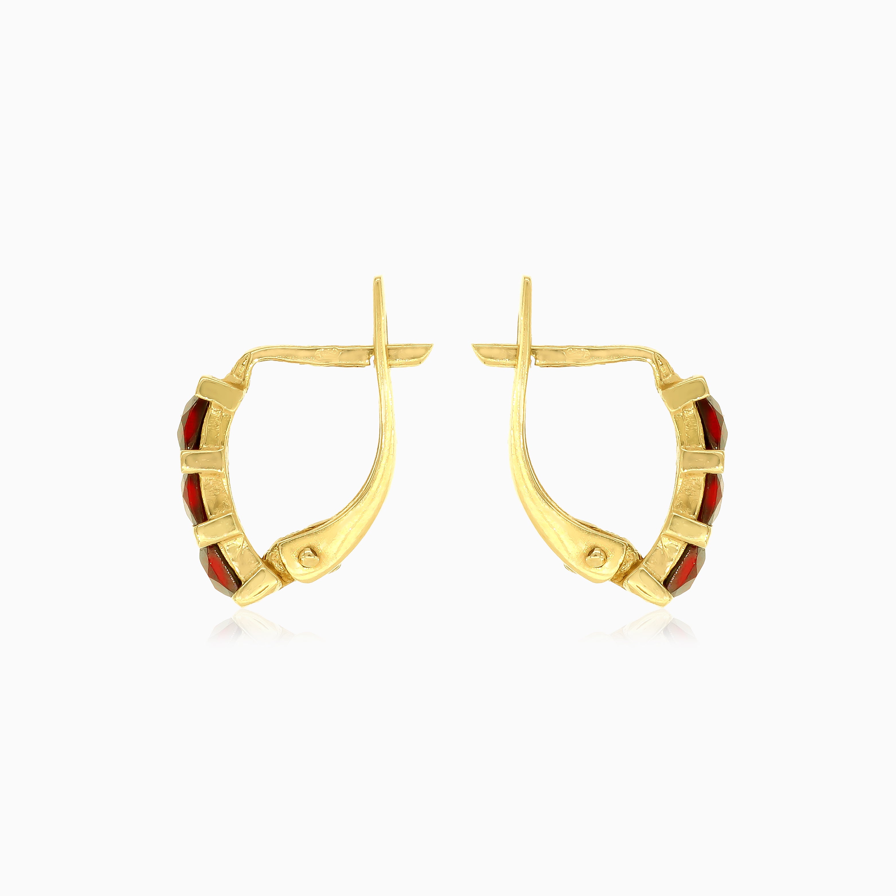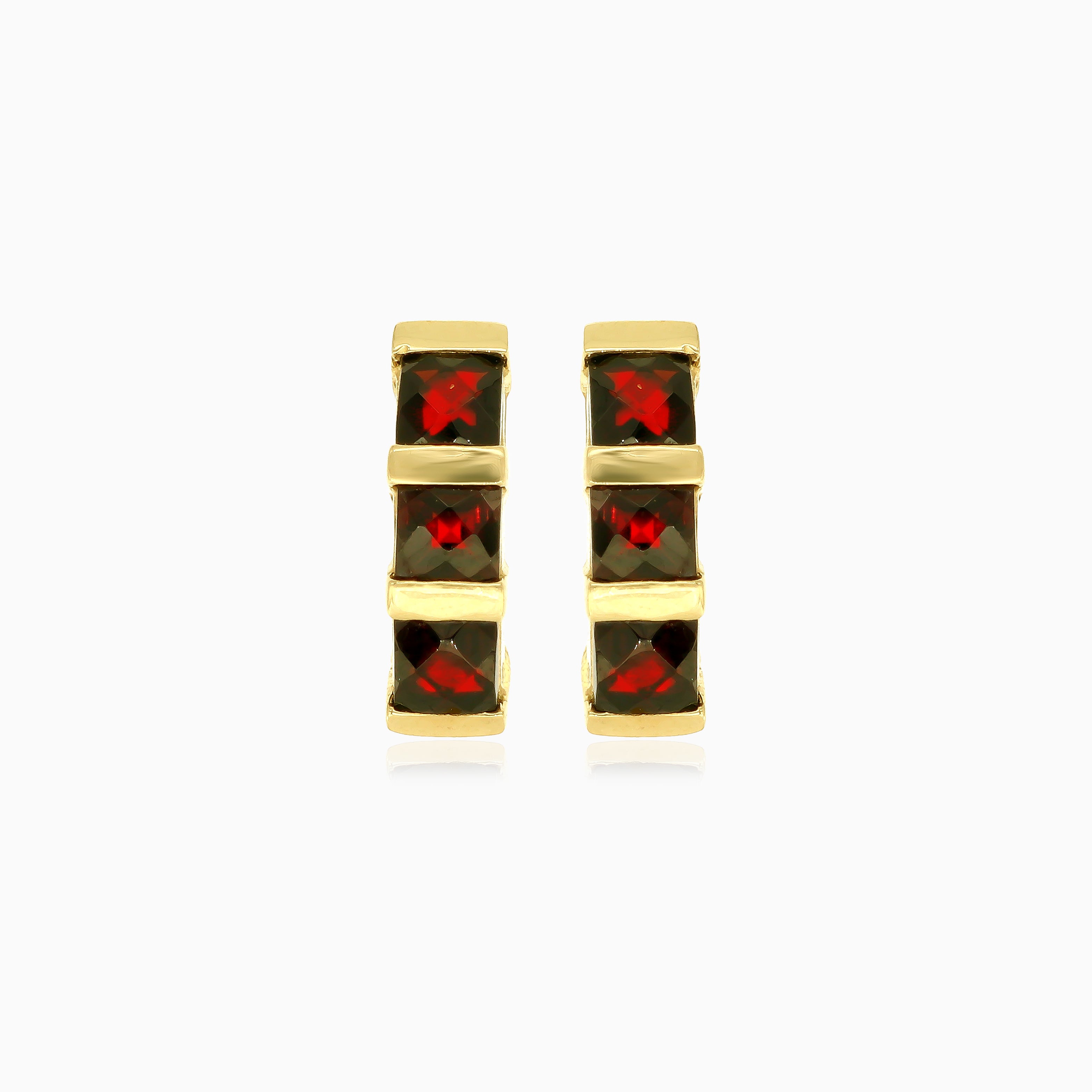 Zlaté náušnice čtvercového princesového brusu se třemi granáty
