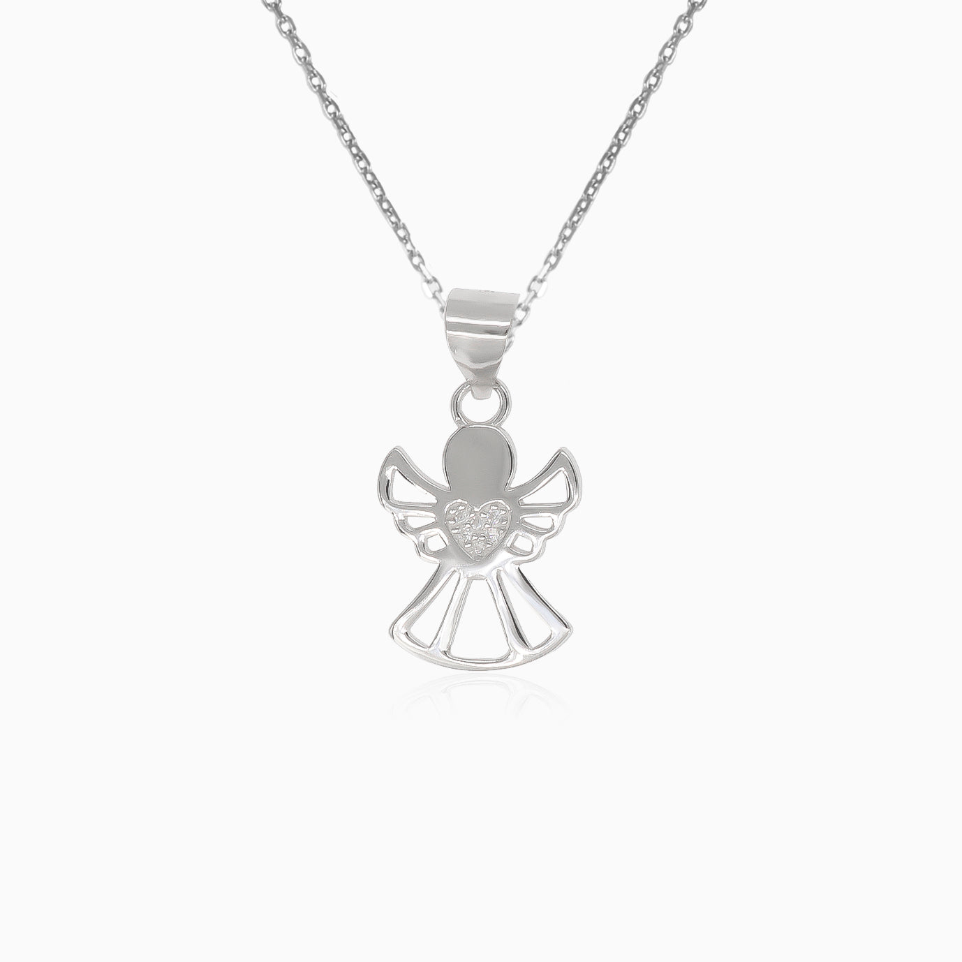 Ozdobte se tímto okouzlujícím stříbrným přívěskem s motivem anděla a zirkonem ve tvaru srdce, který vyzařuje lásku a půvab.