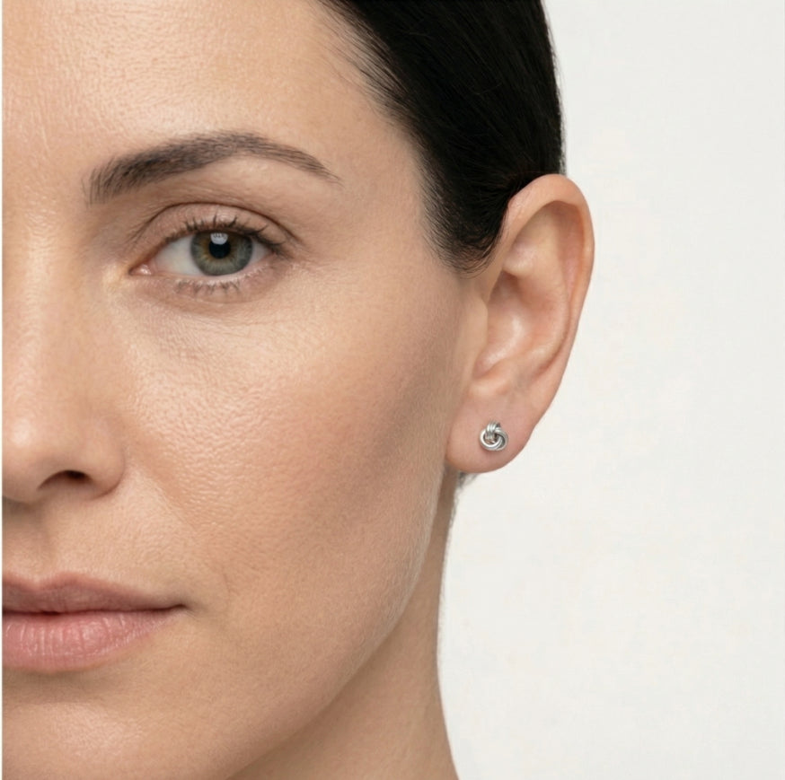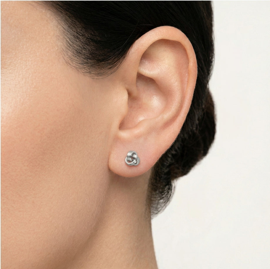 Stříbrné náušnice vyrobené ze tří kruhů, proč jsou zatočené dohromady.