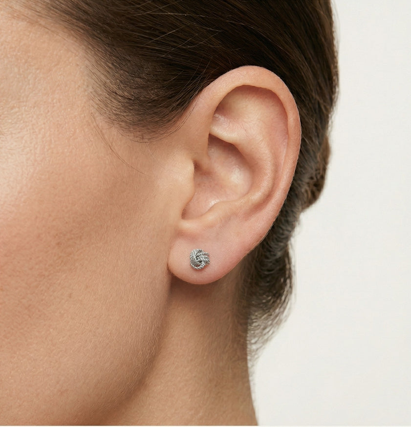 Stříbrné náušnice vyrobené ze tří kruhů, které jsou stočeny dohromady.
