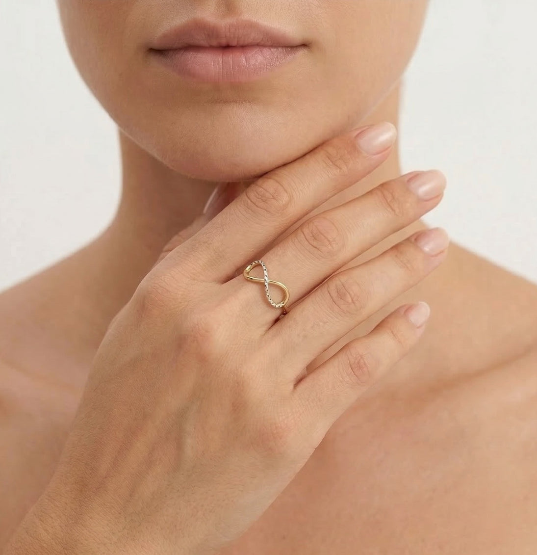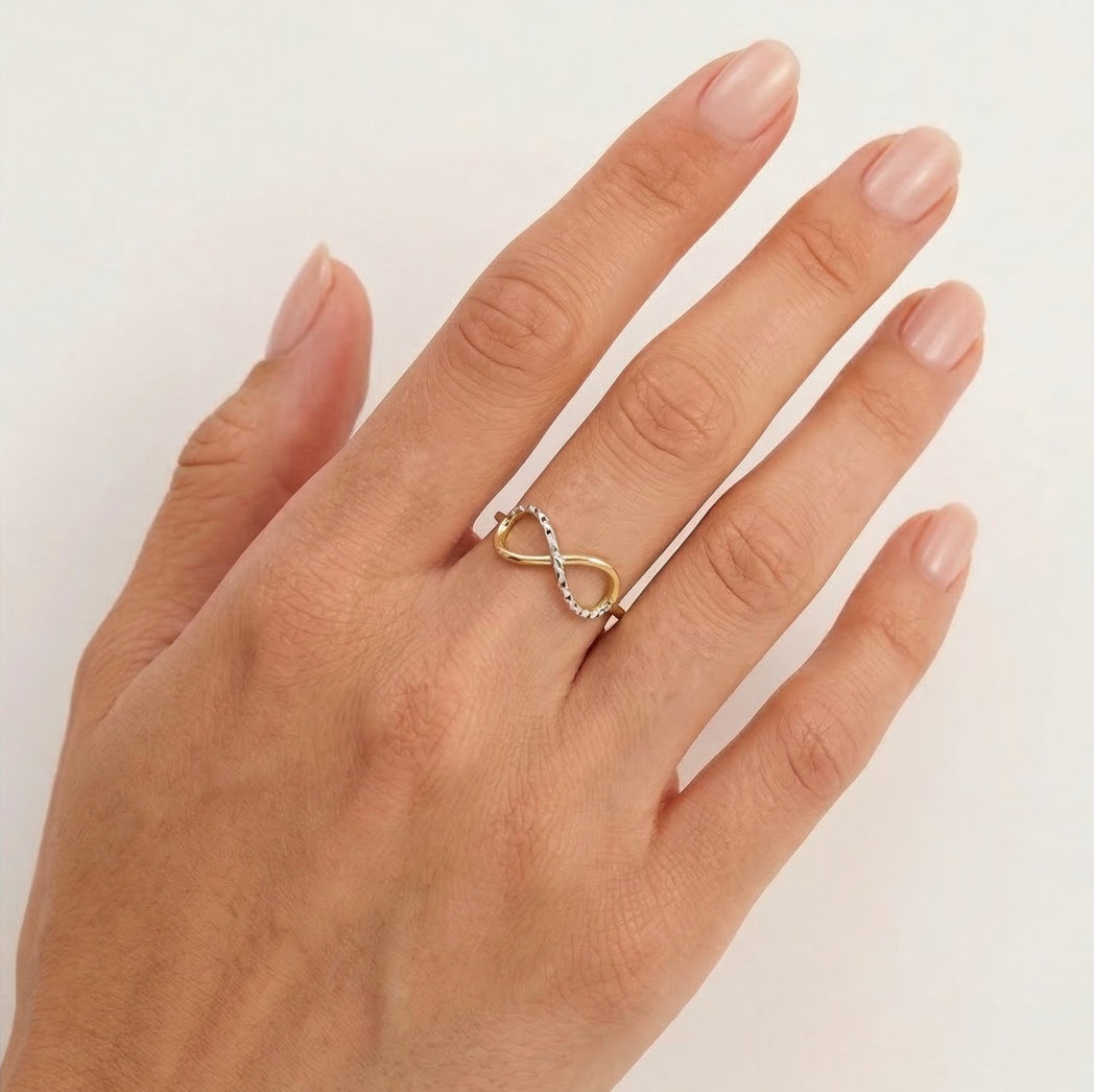 Symbolický dámský prsten ze 14kt žlutého a bílého zlata s designem nekonečna.