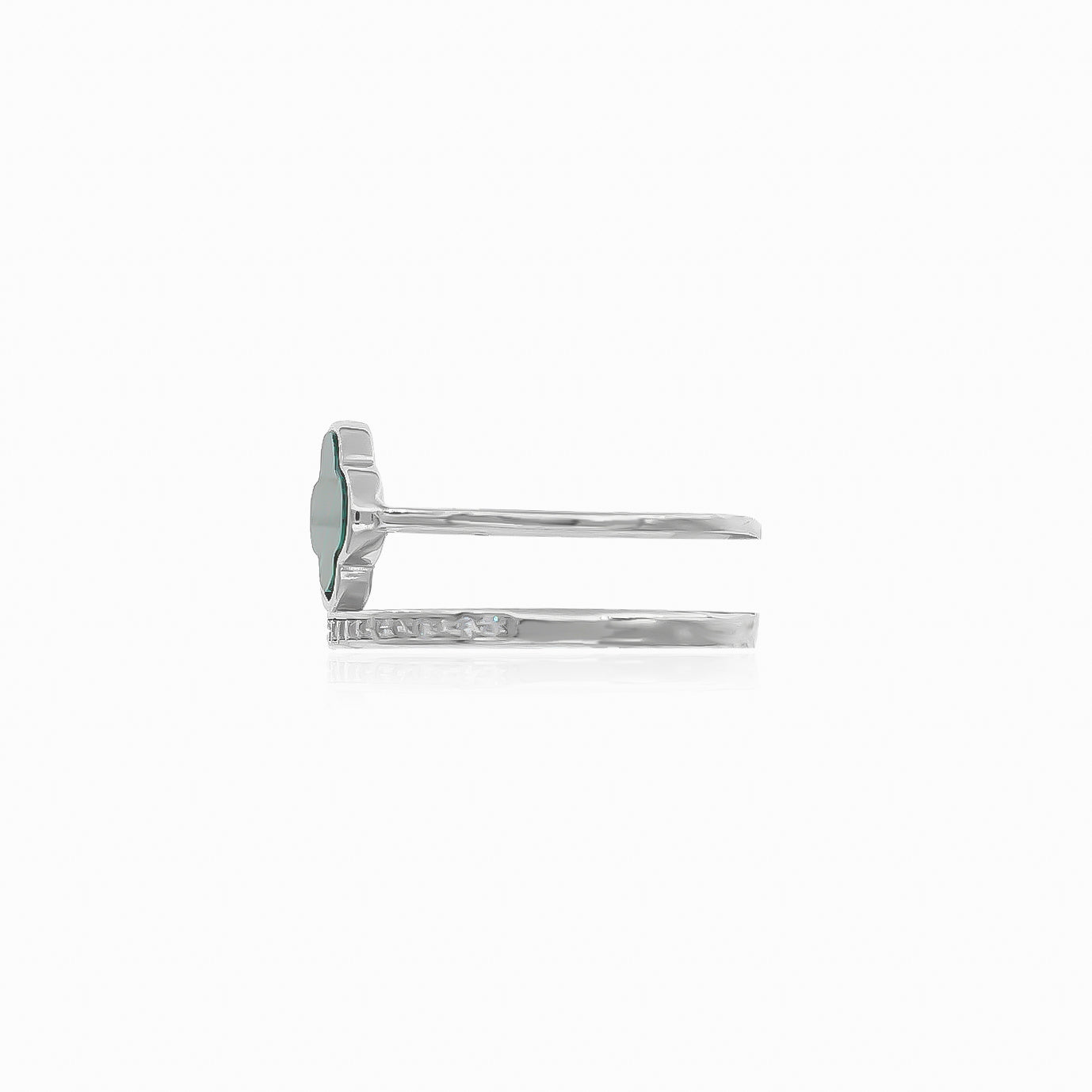 Stříbrný prsten se zeleným achátem ve tvaru čtyřlístku