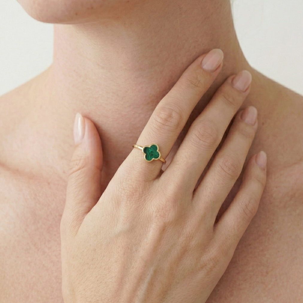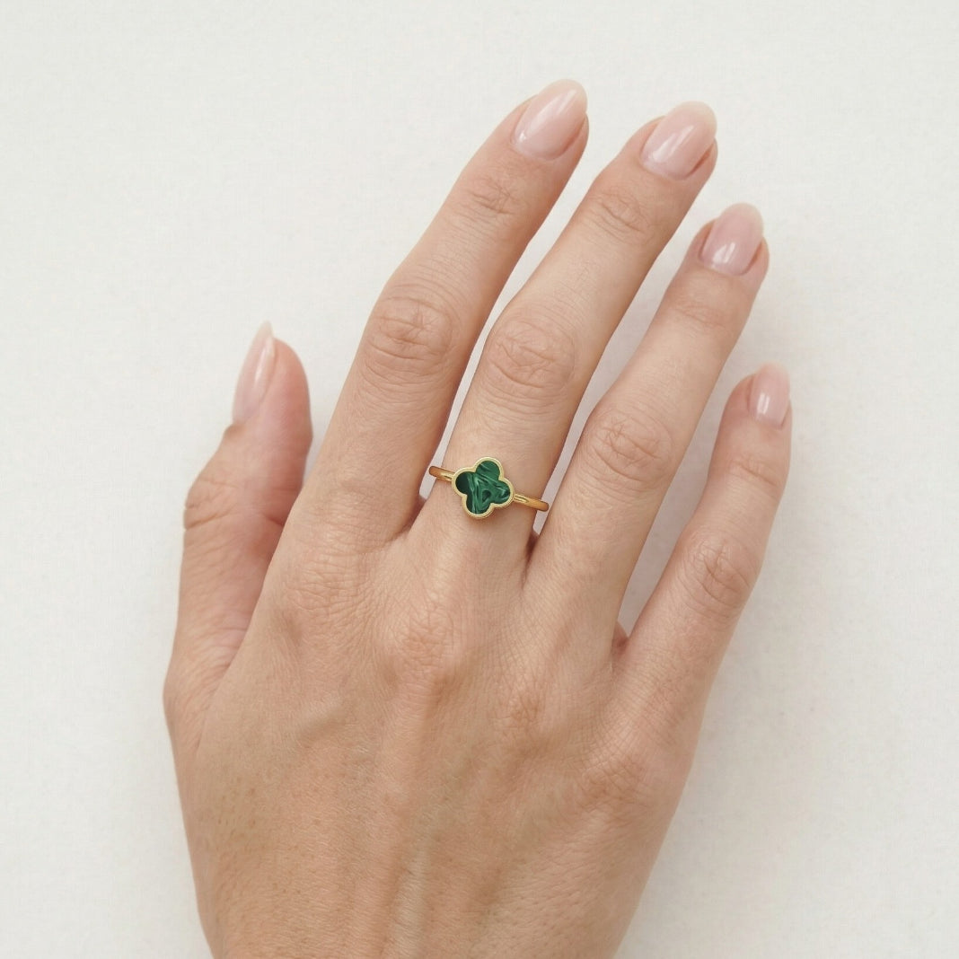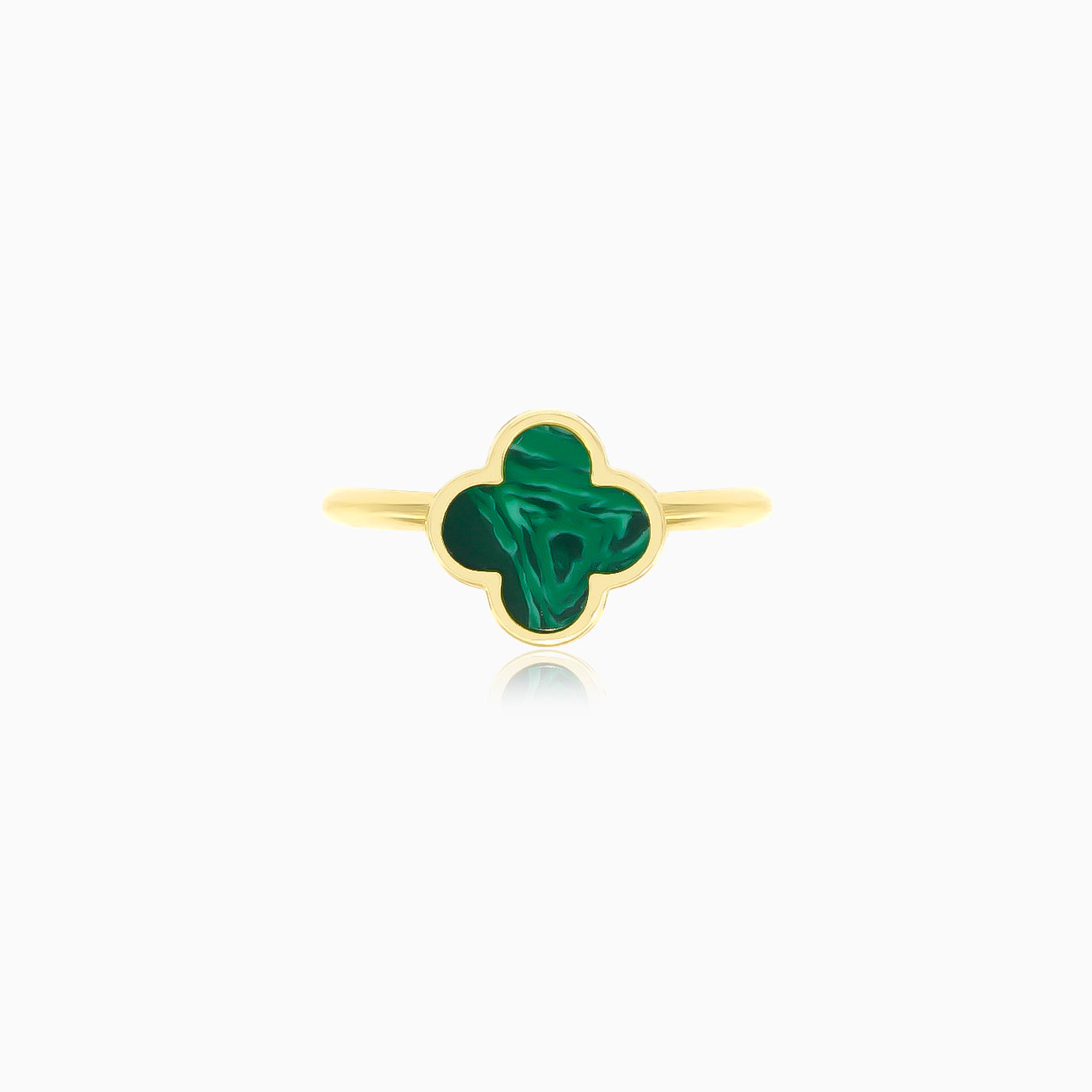 Zlatý prsten se zeleným achátem ve tvaru čtyřlístku