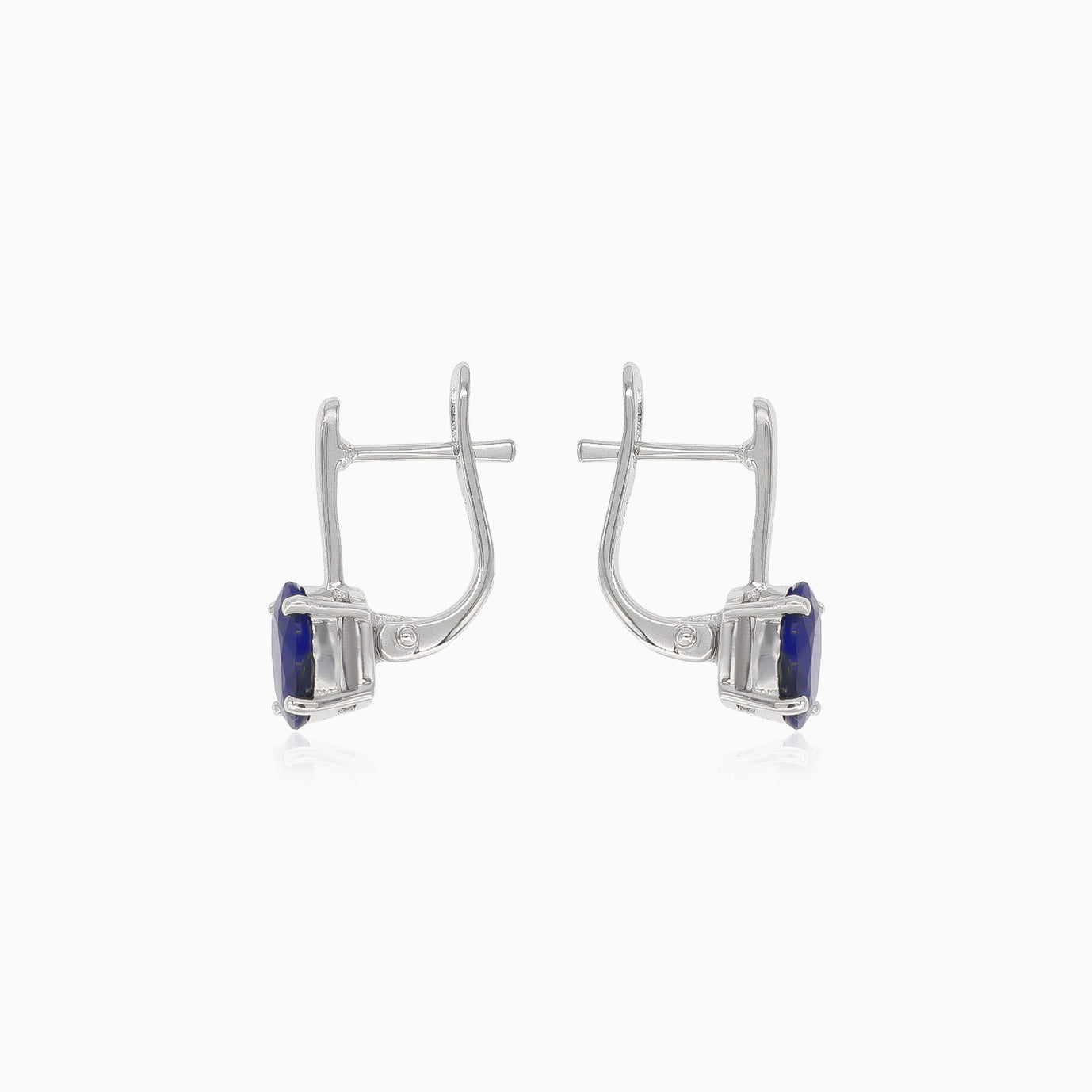Dodejte svému vzhledu nádech elegance s našimi stříbrnými náušnicemi s oválným syntetickým safírem jemného krokového brusu. Tyto náušnice jsou zajištěny zapínáním na patentku a osazeny čtyřmi hroty a nabízejí styl i bezpečnost.
