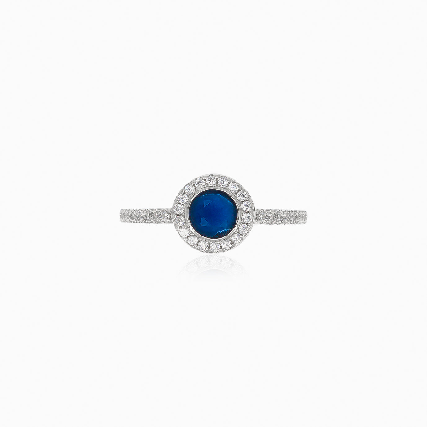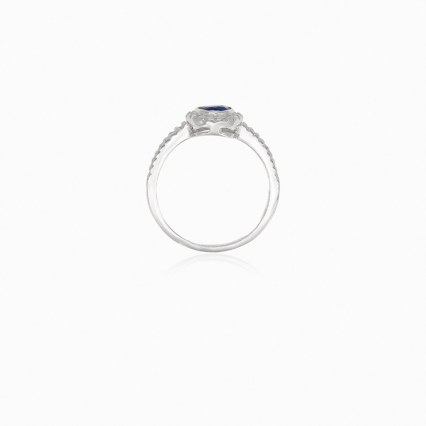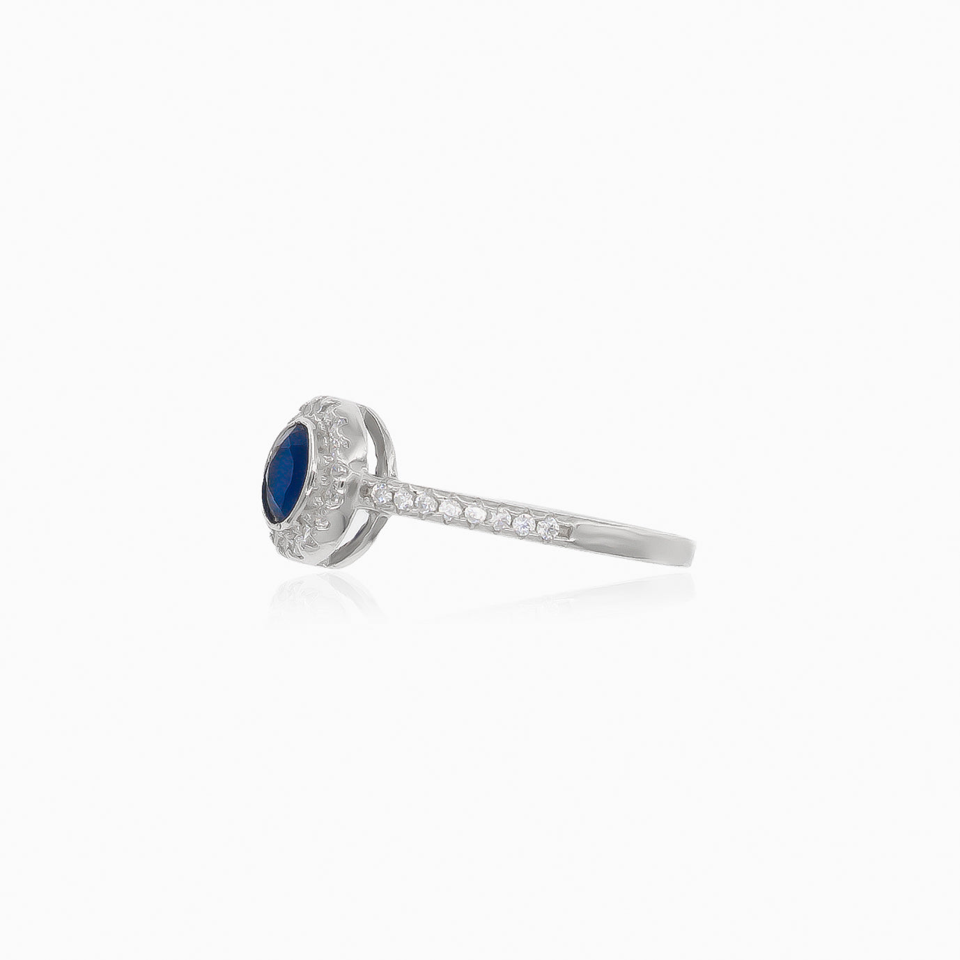 Vyzdvihněte svůj styl s naším dámským stříbrným prstenem se syntetickým safírem a kubickými zirkony v jemném stupňovitém výbrusu, elegantně zasazenými v rámečku.