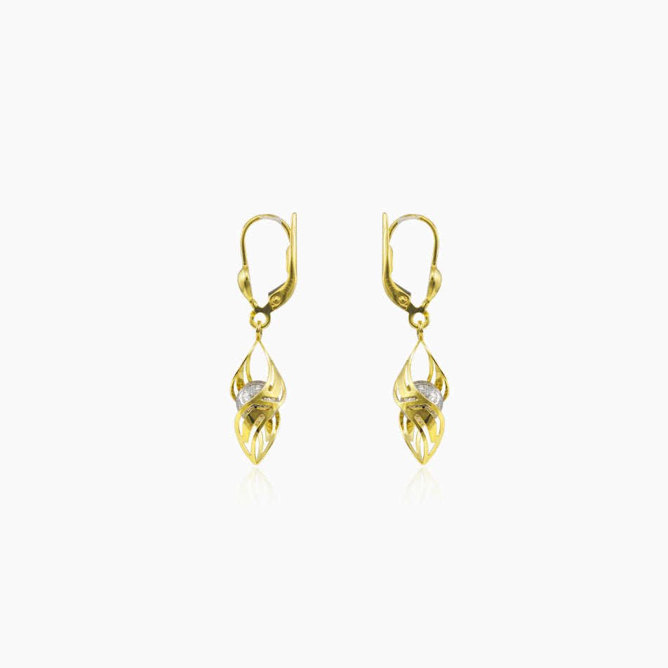 Visací spirálové náušnice ze 14-karátového žlutého zlata s kuličkou z bílého zlata ve středu.