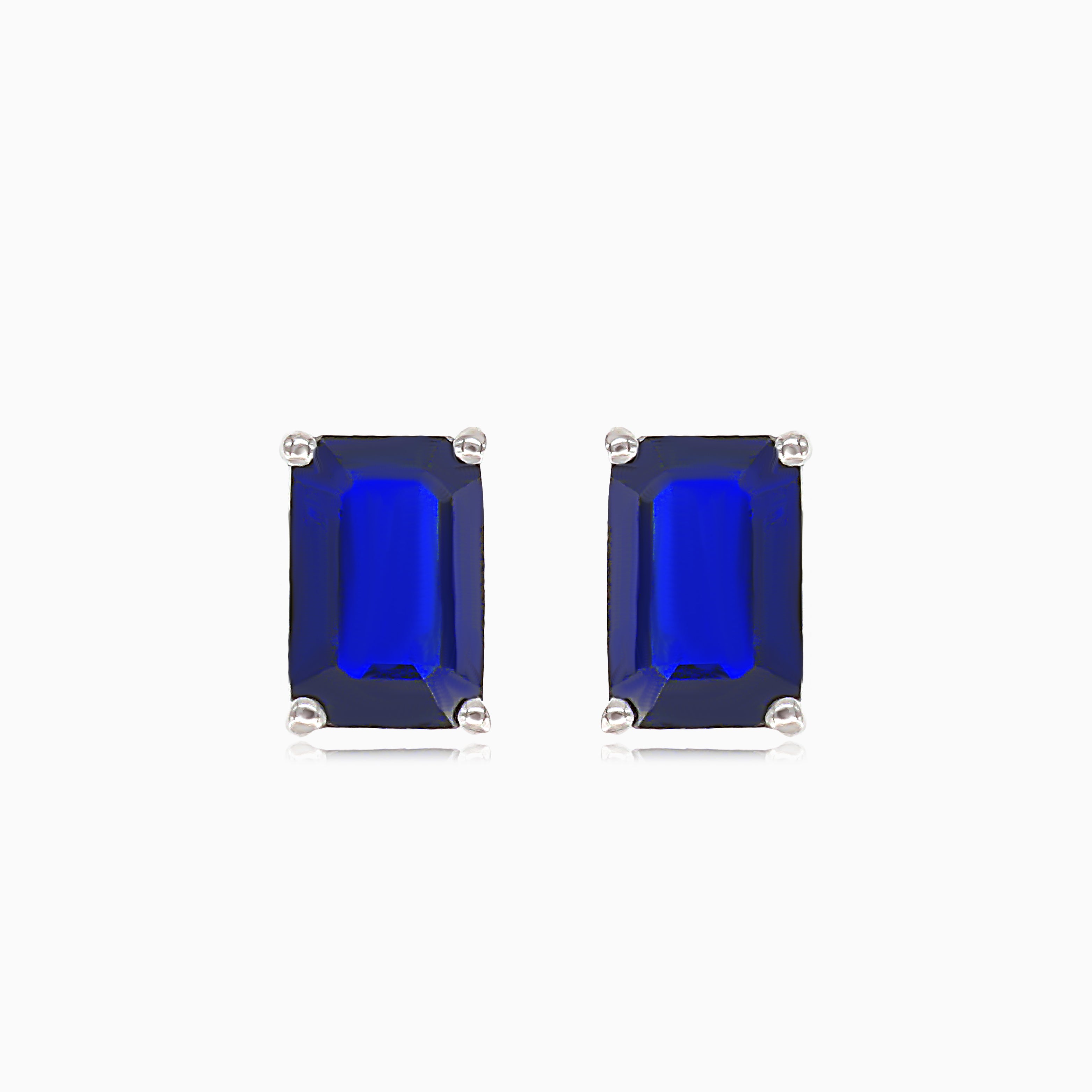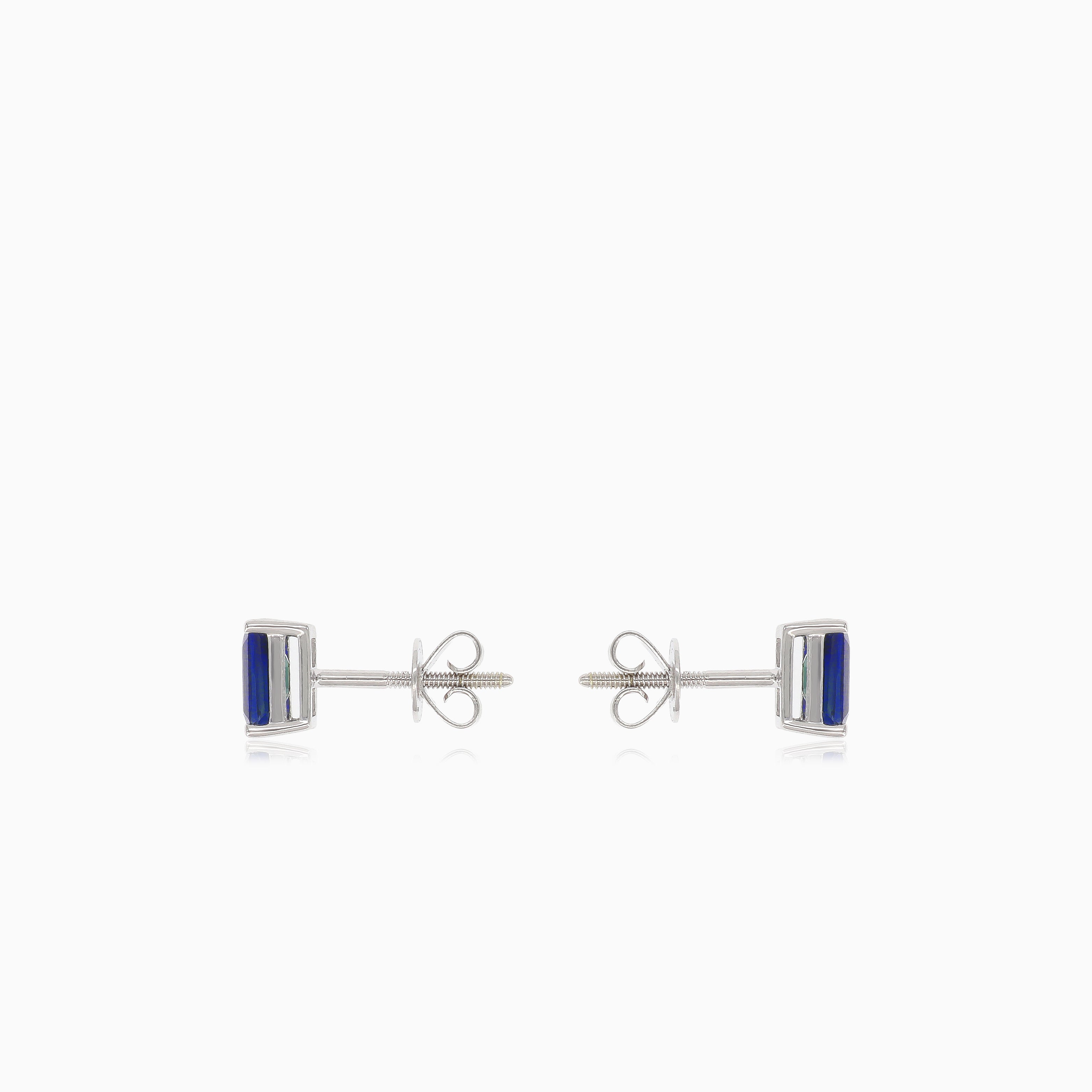 Vylepšete svůj styl těmito nádhernými náušnicemi z bílého 14kt zlata s modrými safíry ve smaragdovém stupňovitém výbrusu. Tyto náušnice, zajištěné čtyřpaprskovým zasazením a šroubovacím puzetovým zapínáním, dodají každému kompletu nádech sofistikovanosti.