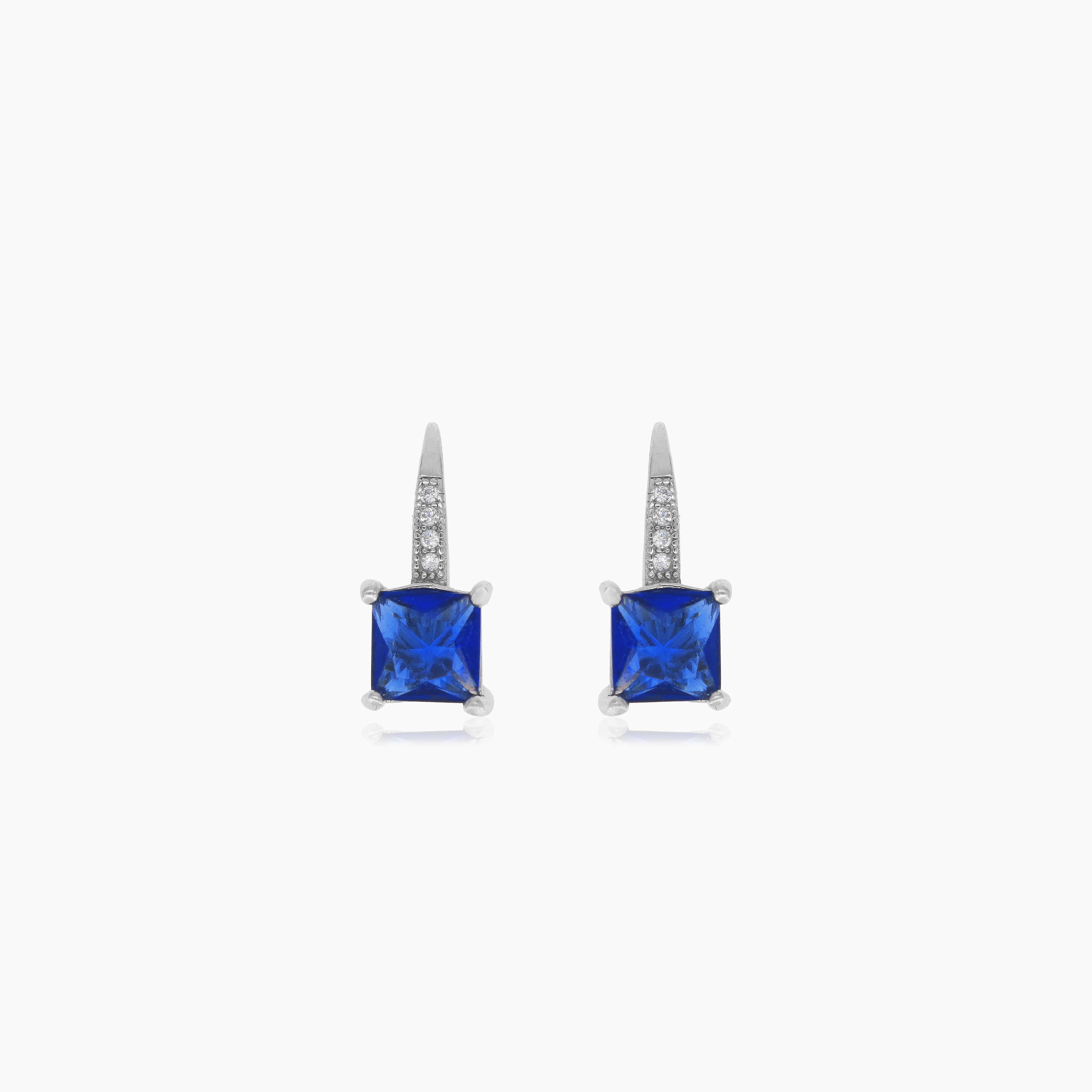 Sofistikované stříbrné náušnice s čtvercovým syntetickým safírem s princess brusem, který je zasazen v afroháčku. Tyto náušnice se pyšní zapínáním na páčku pro větší bezpečnost a pohodlí a jsou zvýrazněny kulatým zirkonem na háčku pro dotek jiskry. Krásný a všestranný doplněk do každé sbírky šperků.