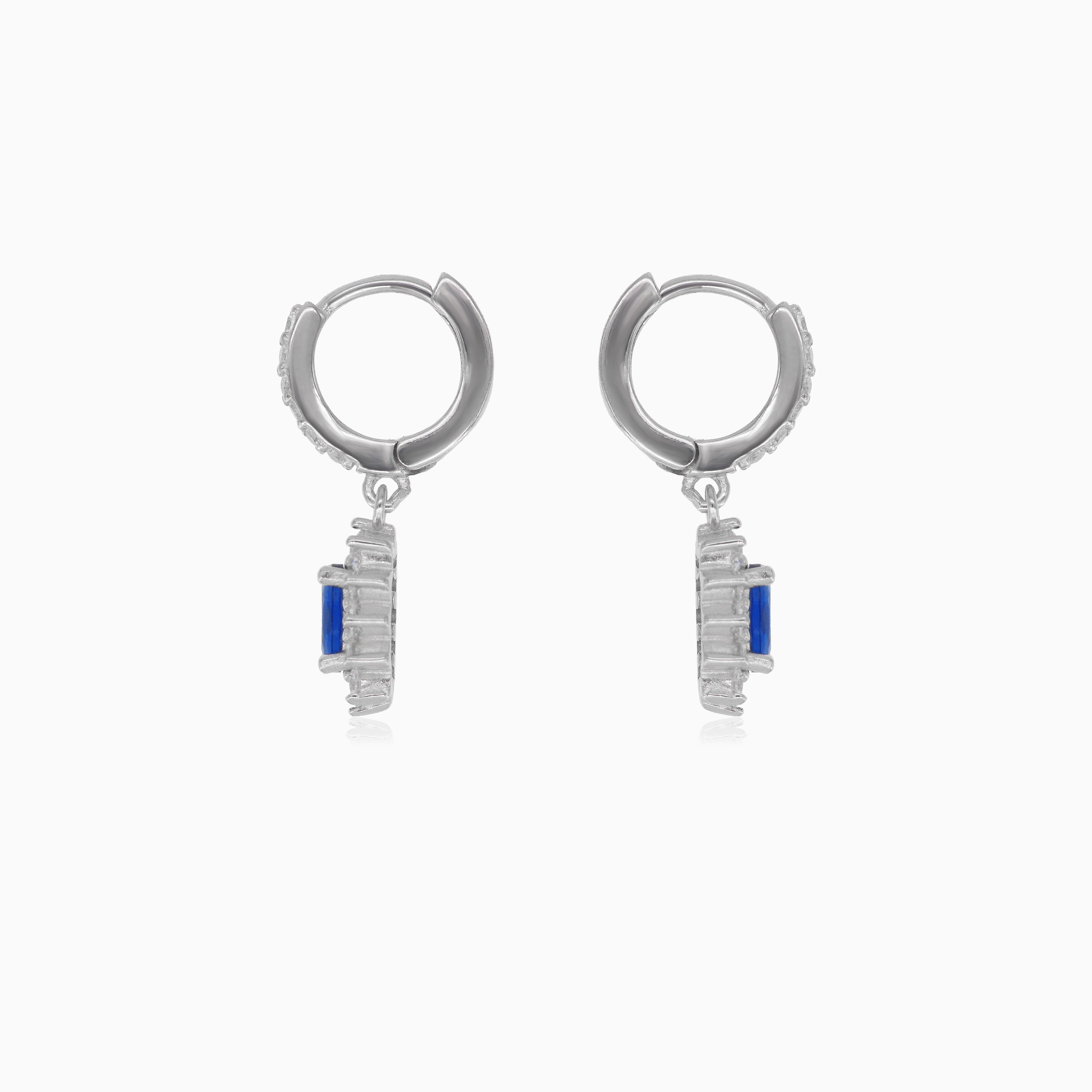 Stříbrné visací náušnice se syntetickým safírem