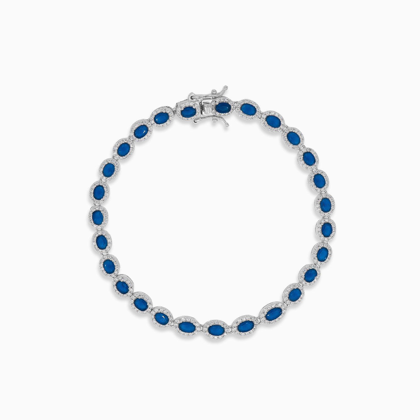 Obklopte se elegancí s naším stříbrným náramkem, který je zdobený syntetickými safíry s oválným jemným stupňovitým výbrusem a kulatými jemnými stupňovitými zirkony. Náramek se zapíná na bezpečnou otevřenou sponu a je osazen hroty.