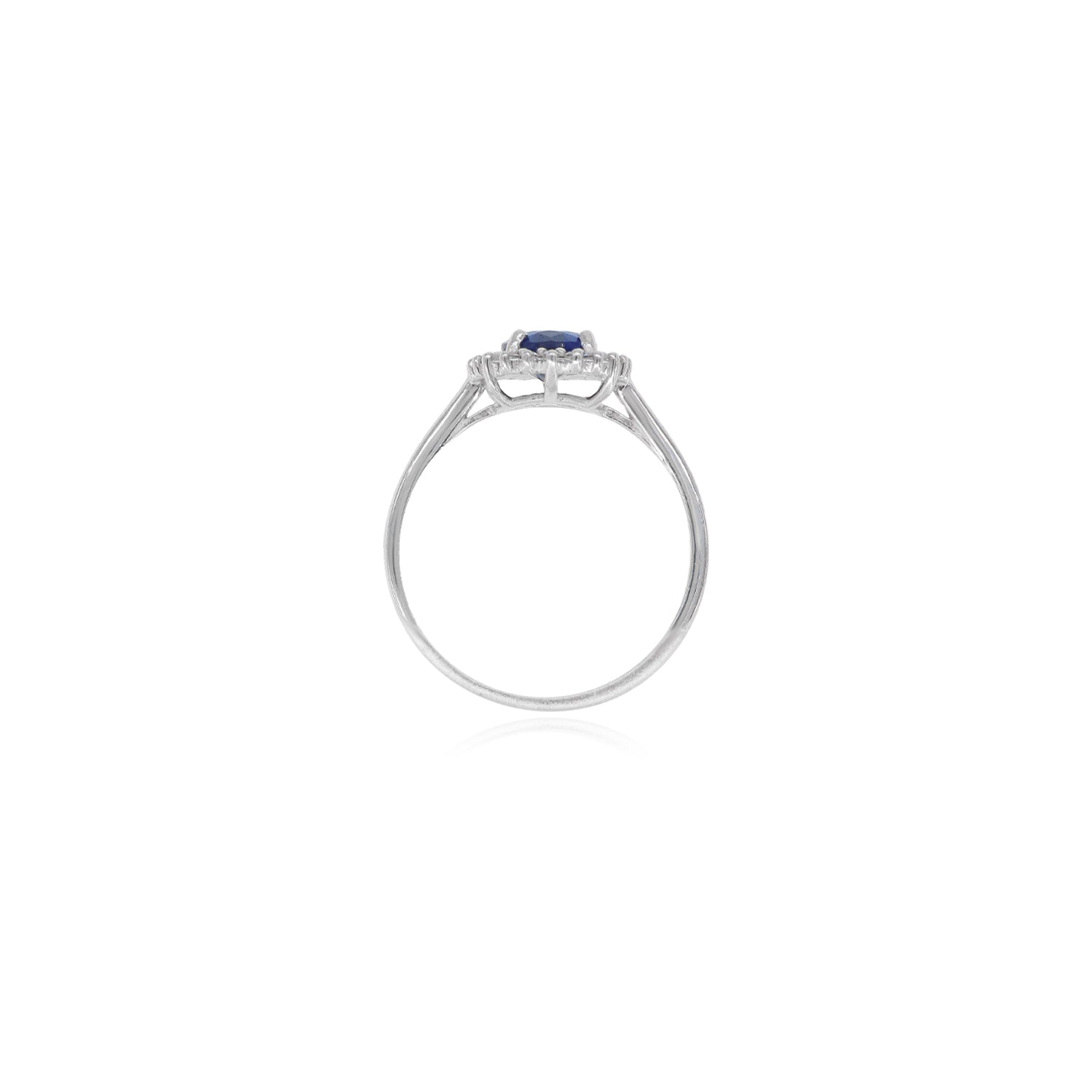 Tento úchvatný stříbrný prsten má uprostřed syntetický safír vybroušený do jemného oválného krokového brusu. Zářivý safír obklopují kulaté zirkony s jemným stupňovitým výbrusem, které mu dodávají další jiskru. Zasazení s hroty krásně zajišťuje každý kámen a vytváří nadčasový a elegantní design ideální pro zvláštní příležitosti.