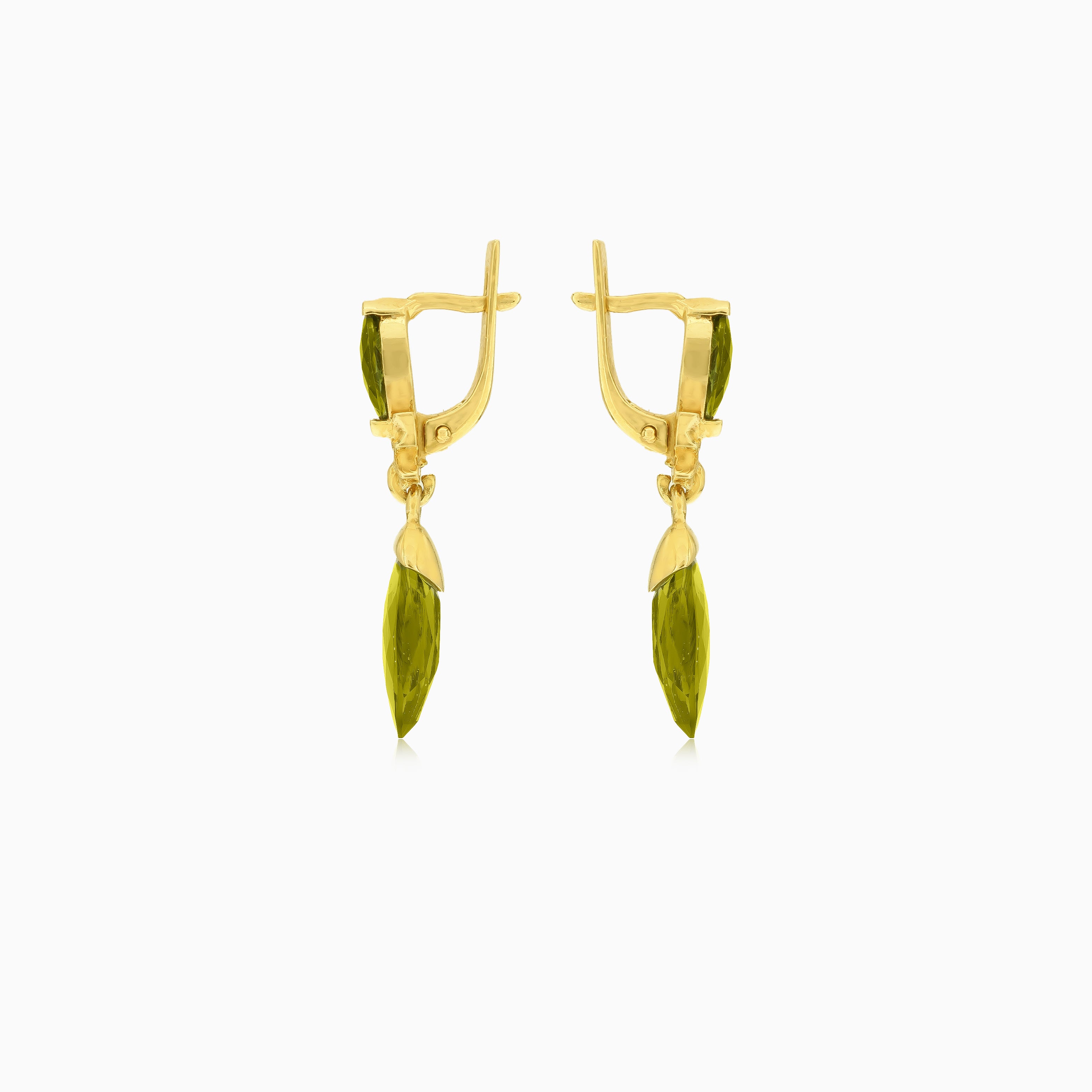 Mystické zlaté náušnice s vltavínem ve tvaru markýzy