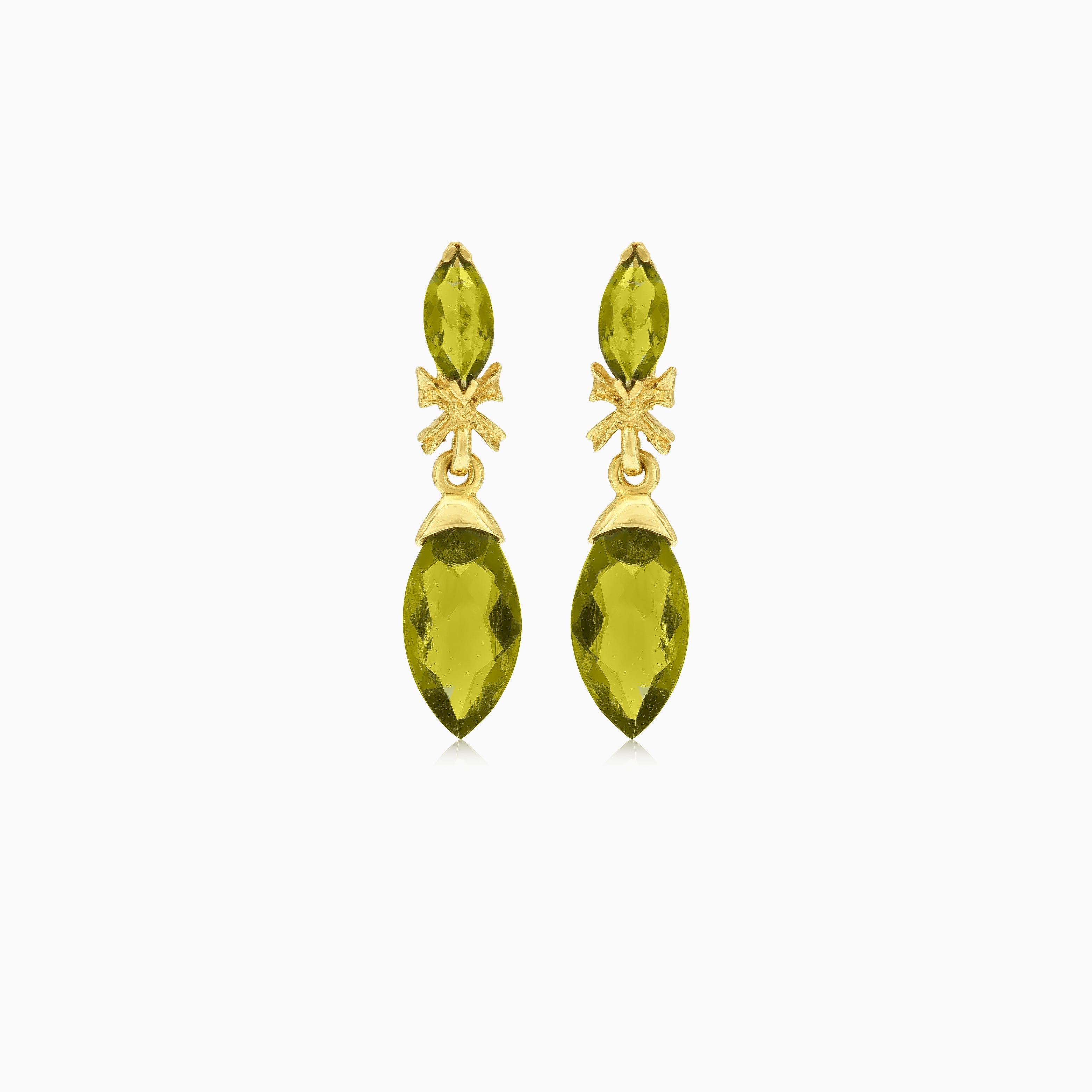 Vylepšete svůj styl těmito náušnicemi ze 14kt žlutého zlata s kameny moldavitu v okouzlujícím markýzovém jemném stupňovitém výbrusu. Zasazení do tvaru písmene V a bezpečné zapínání na patentku dodávají těmto mystickým náušnicím nádech elegance a hodí se pro každou příležitost.