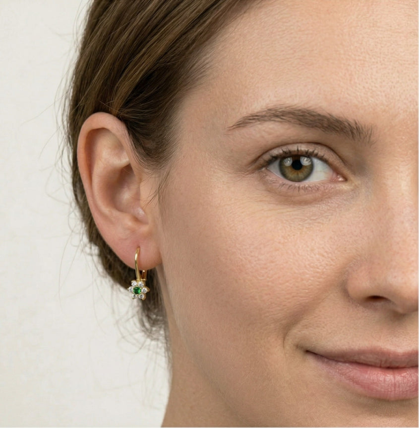 Zelené květinové náušnice ze zlata s kubickou zirkonií