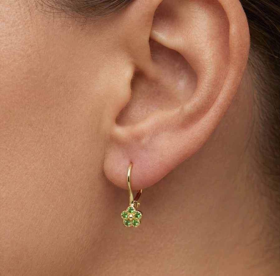 visací náušnice, náušnice smaragd, květinové náušnice