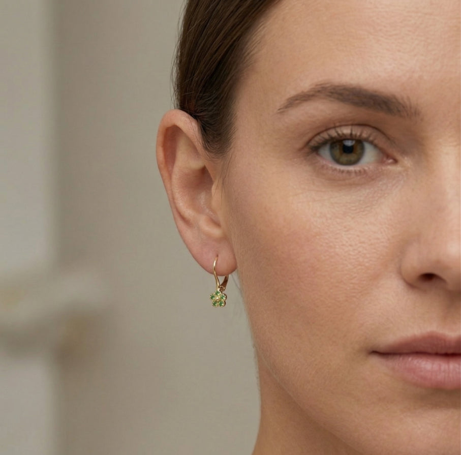 Zelené květinové náušnice ze žlutého zlata