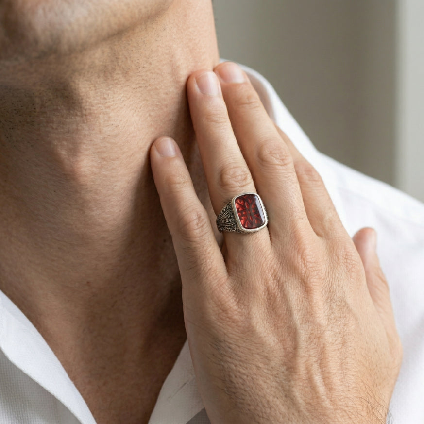 Tento výrazný pánský prsten spojuje leštěné stříbro s achátem v radiant brusu, který vyzařuje přirozenou teplou záři. Kámen je vsazen do hladkého rámečku a zvýrazňuje svou hloubku a charakter. Robustní silueta dodává sebevědomou mužnou přítomnost, zatímco pohodlné provedení zajišťuje každodenní nošení a nadčasový styl.
