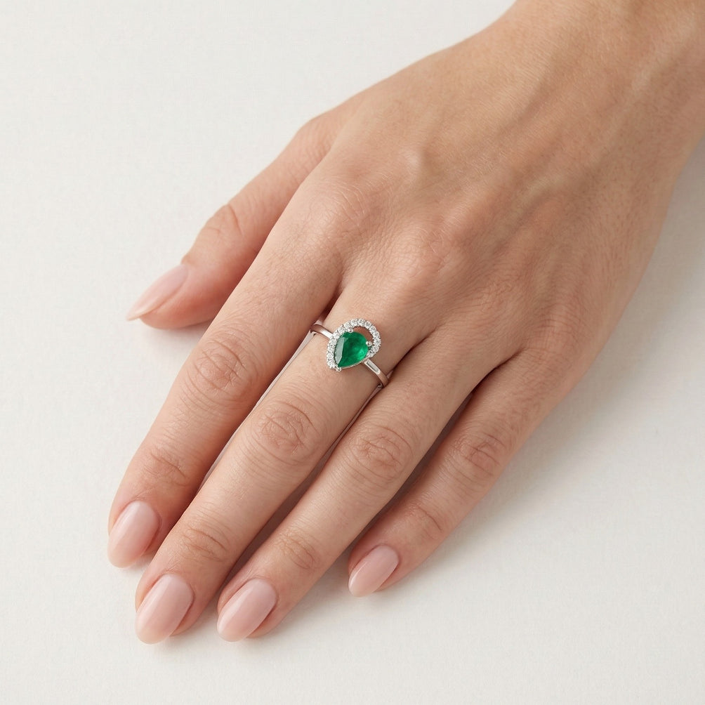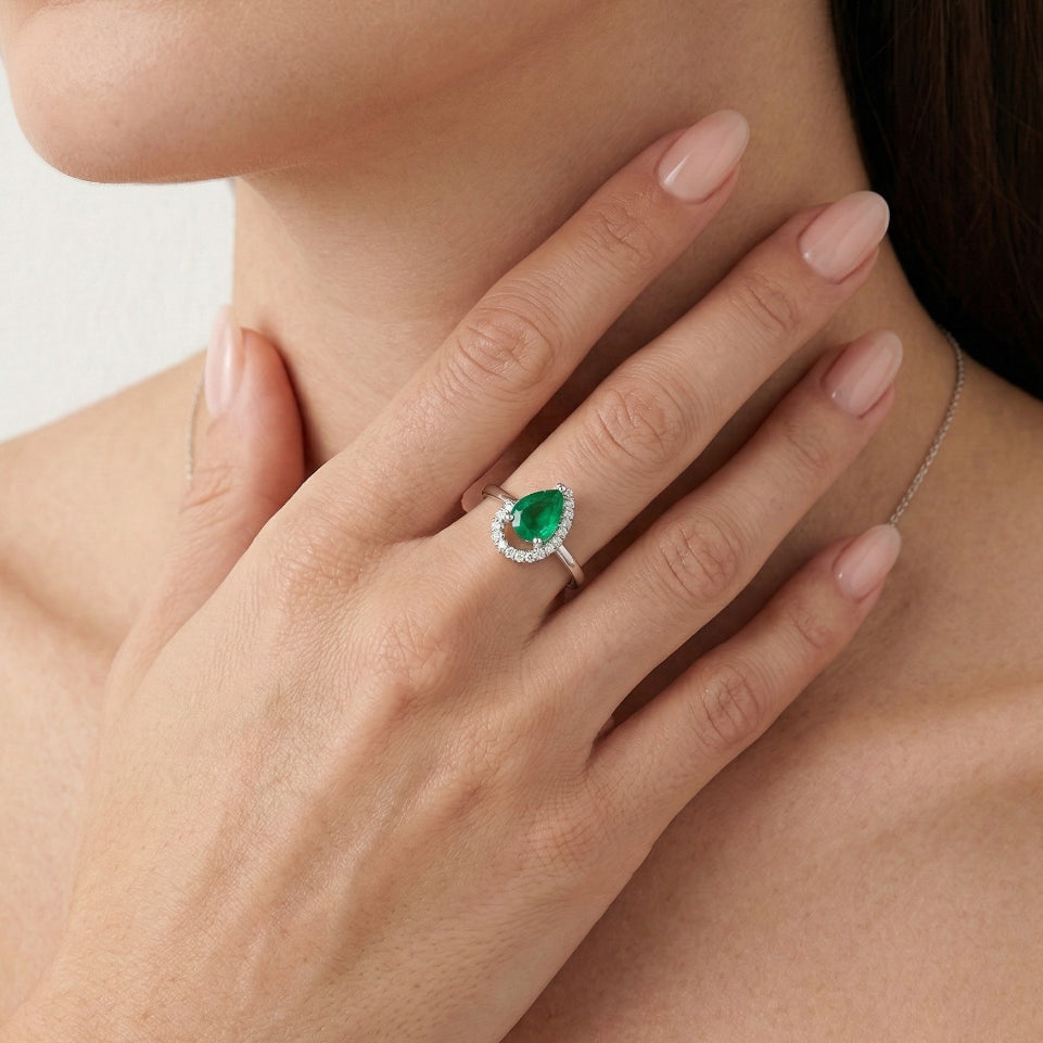 Stříbrný prsten pro ženy v kombinaci s kapkovým brusem zeleného nefritu s vlnovkou zdobenou kubickou zirkonií.