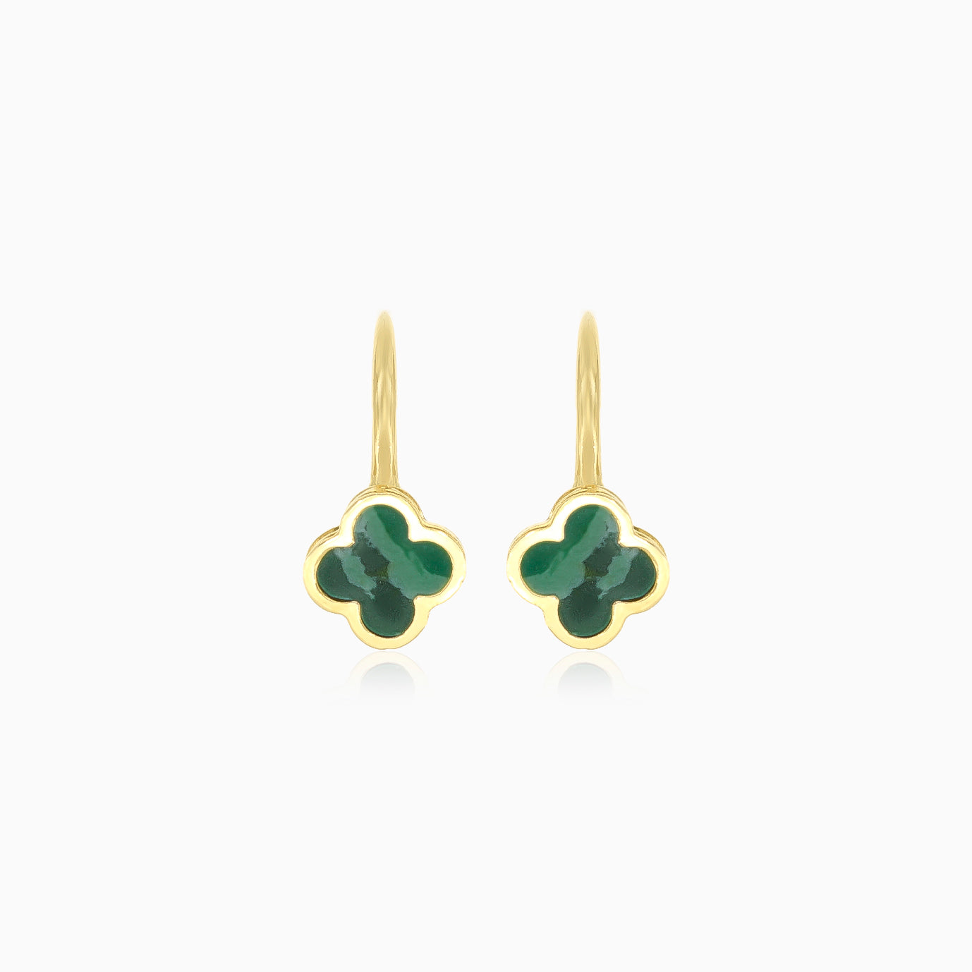 Vylepšete svůj styl těmito úžasnými visacími náušnicemi se zeleným achátem plochého brusu, zasazenými do 14kt žlutého zlata s rámečkem. Složitý design čtyřlístku dodá každému outfitu nádech elegance.Bezpečné a stylové zapínání na páčku.