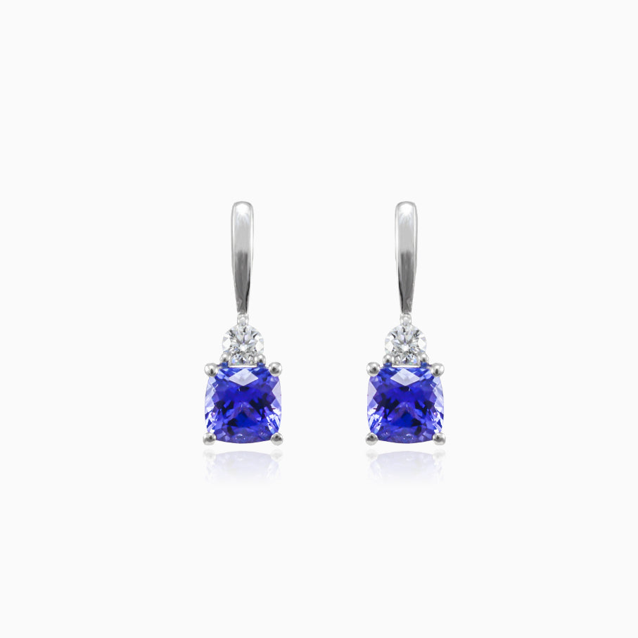 Božské náušnice z 14-karátového bílého zlata s tanzanitem cushion brusu a diamanty brilliant brusu.