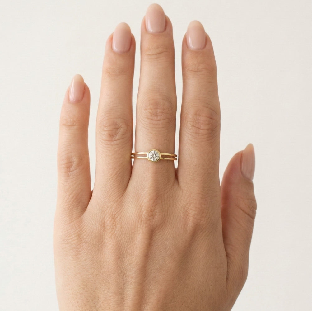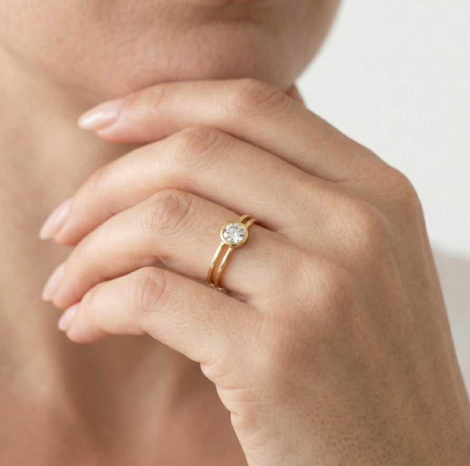 Dvouřadý prsten ze žlutého zlata