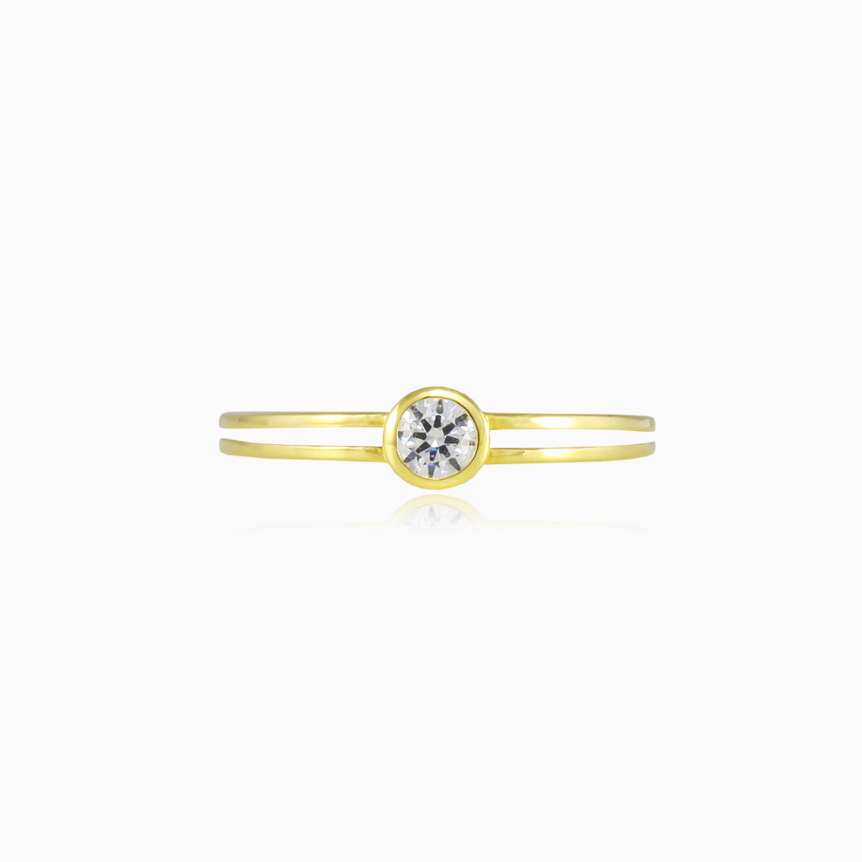 Prsten ze žlutého zlata s dvouřadými rameny a lunetou s centrální kubickou zikonií.