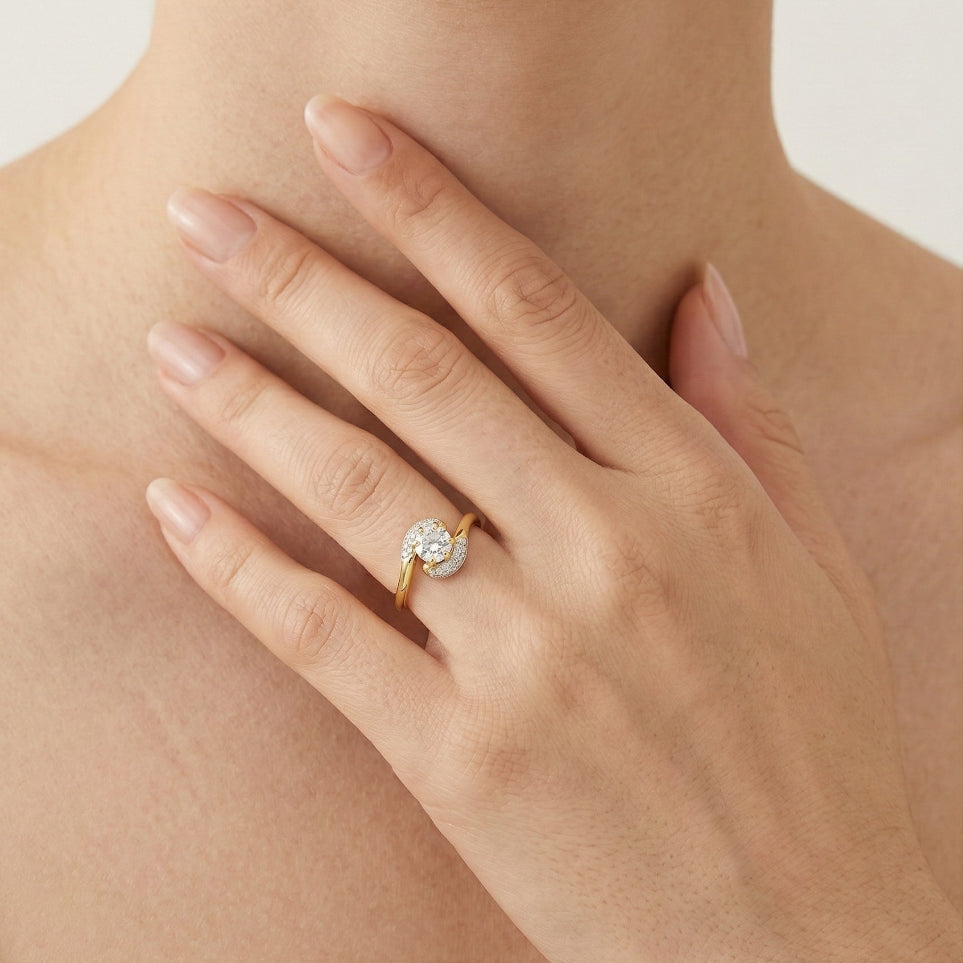 Okouzlující kroucený prsten ze 14K zlata zdobený kubickou zirkonií.