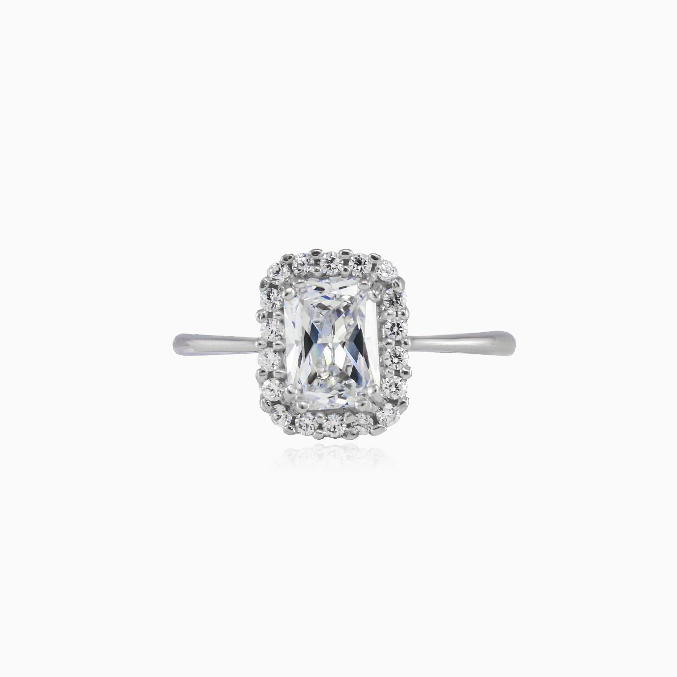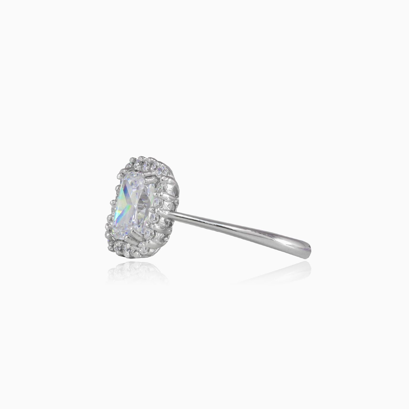 Obdélníkový prsten z bílého zlata se zirkony
