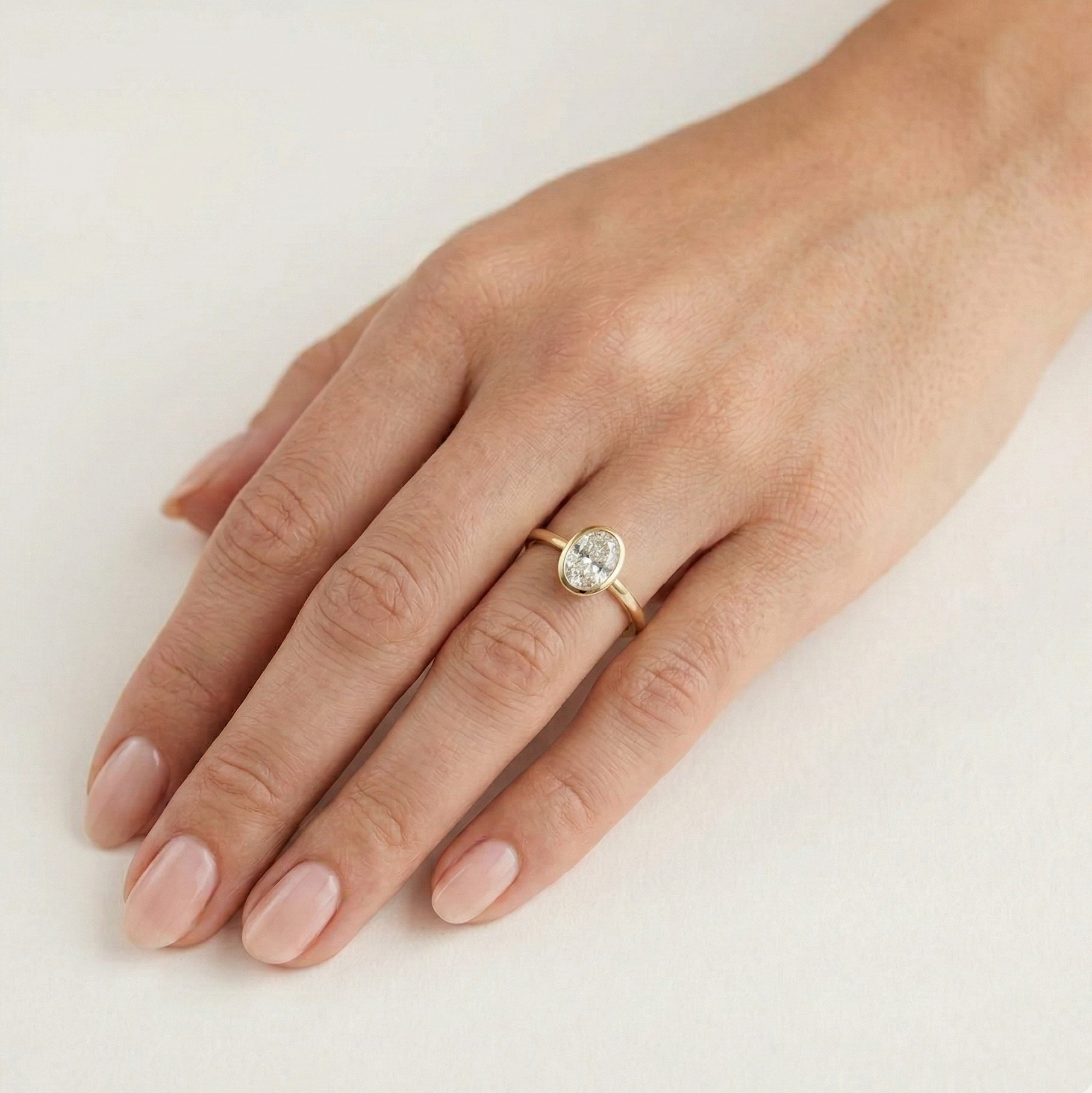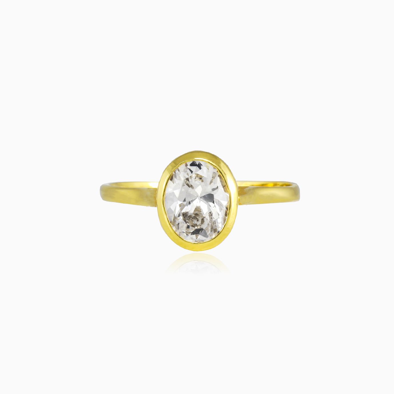 Zlatý prsten s oválným zirkonem osazeným v Lunetě