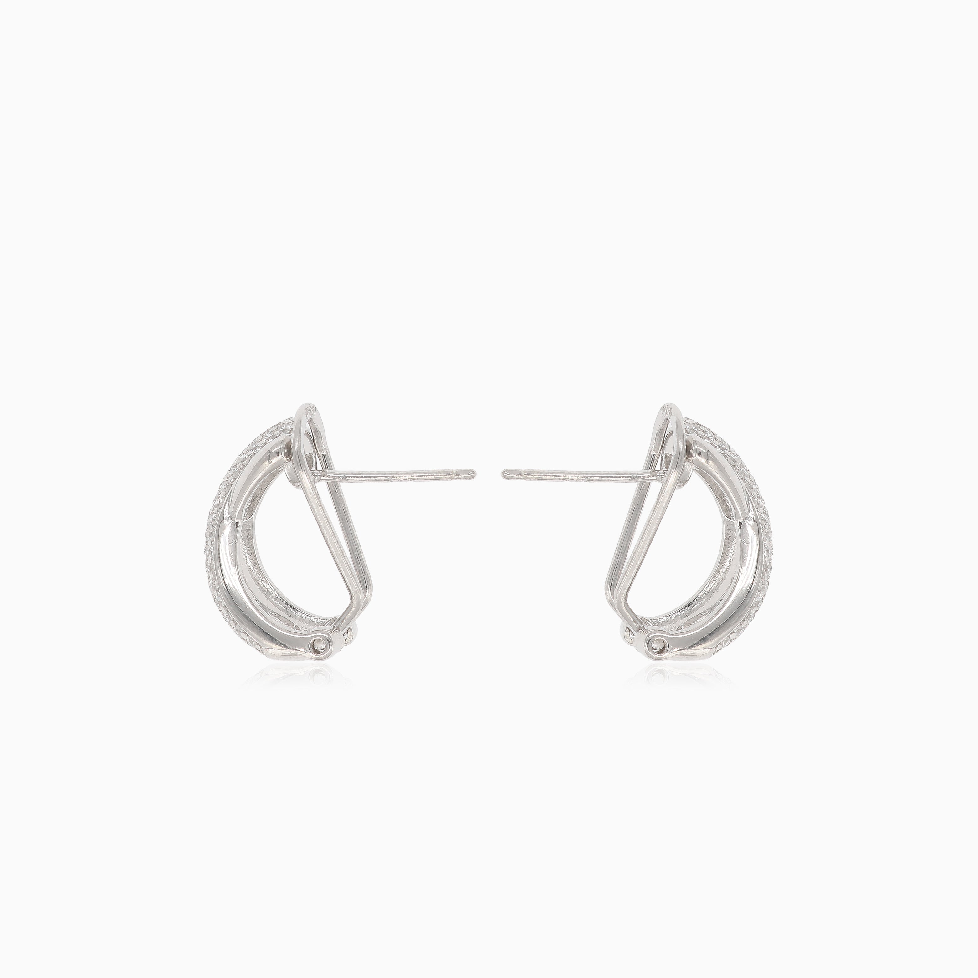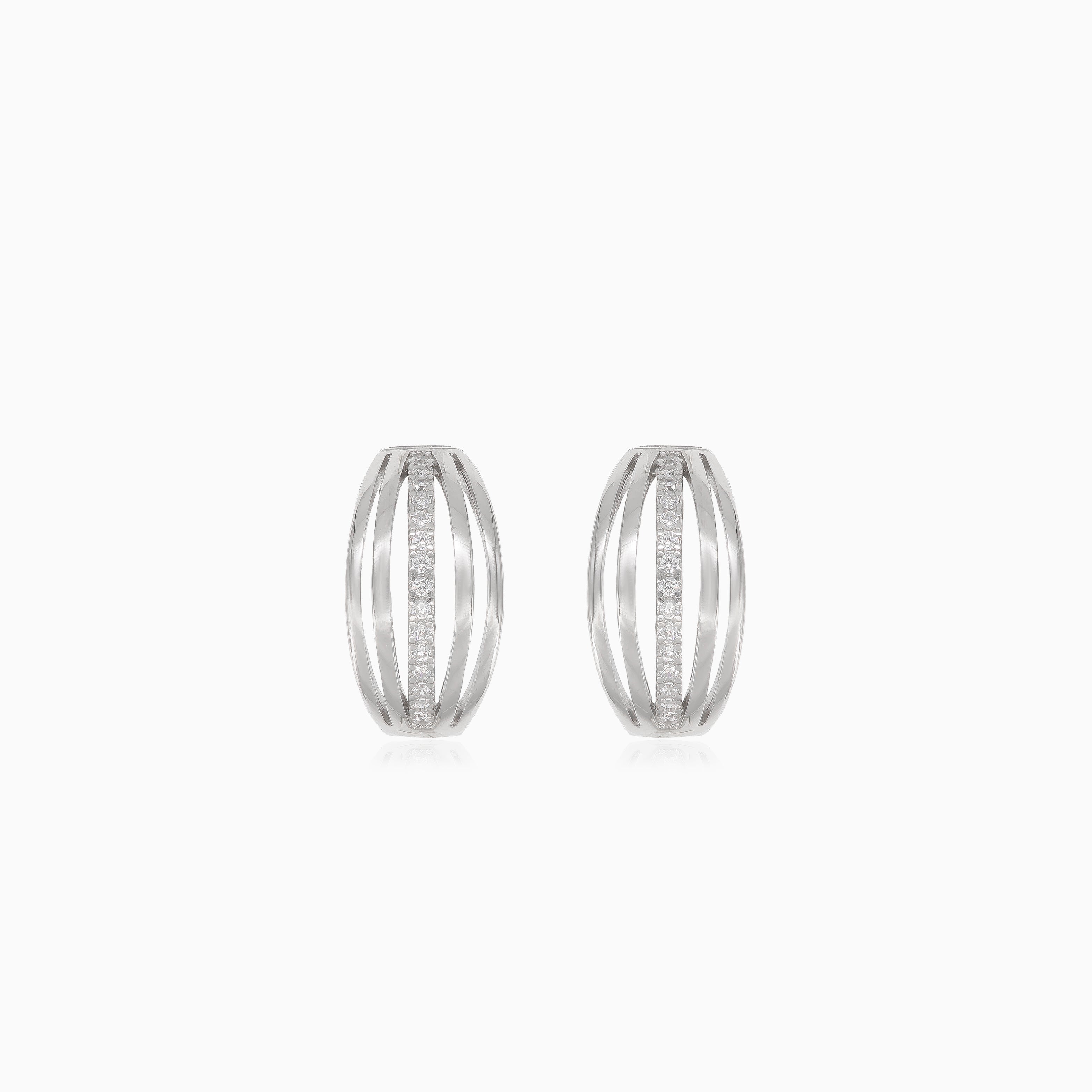 Vylepšete svůj vzhled těmito elegantními stříbrnými náušnicemi se stylovým pruhovaným vzorem zdobeným třpytivými zirkony, doplněnými zapínáním omega back pro bezpečné a pohodlné nošení.