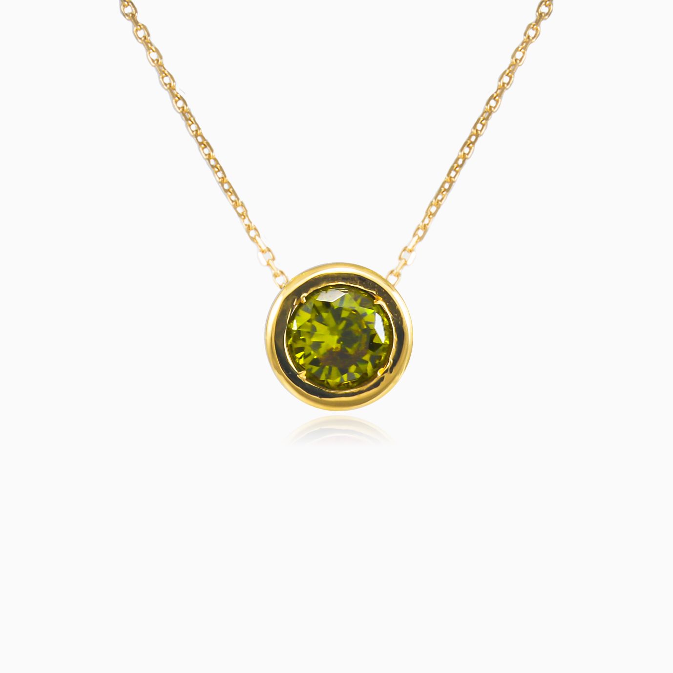 Minimalistický náhrdelník z 14-karátového zlata s kulatým olivínem v bezel osazení.