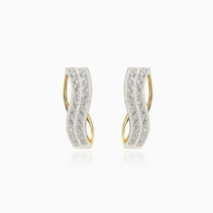 Okouzlující náušnice z 14-karátového žlutého zlata ozdobené dvěmi oblémi řadami kubické zirkonie.