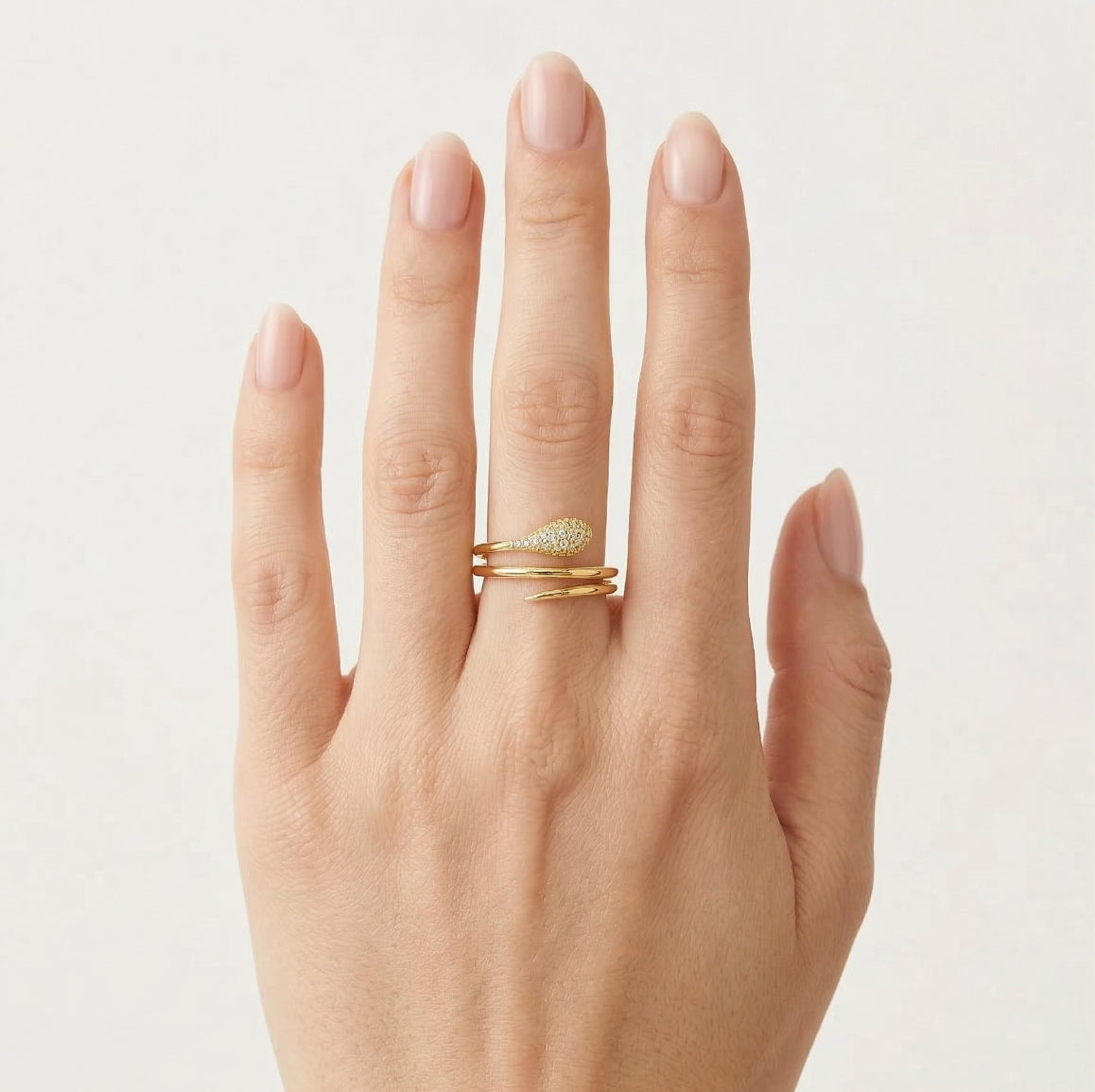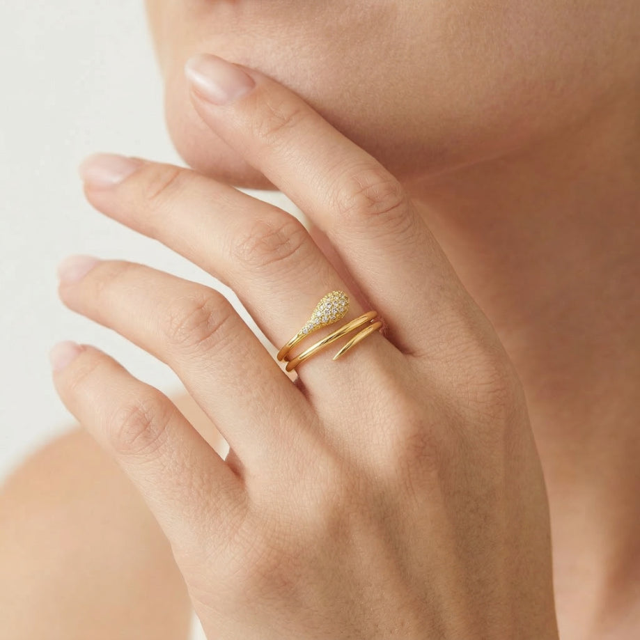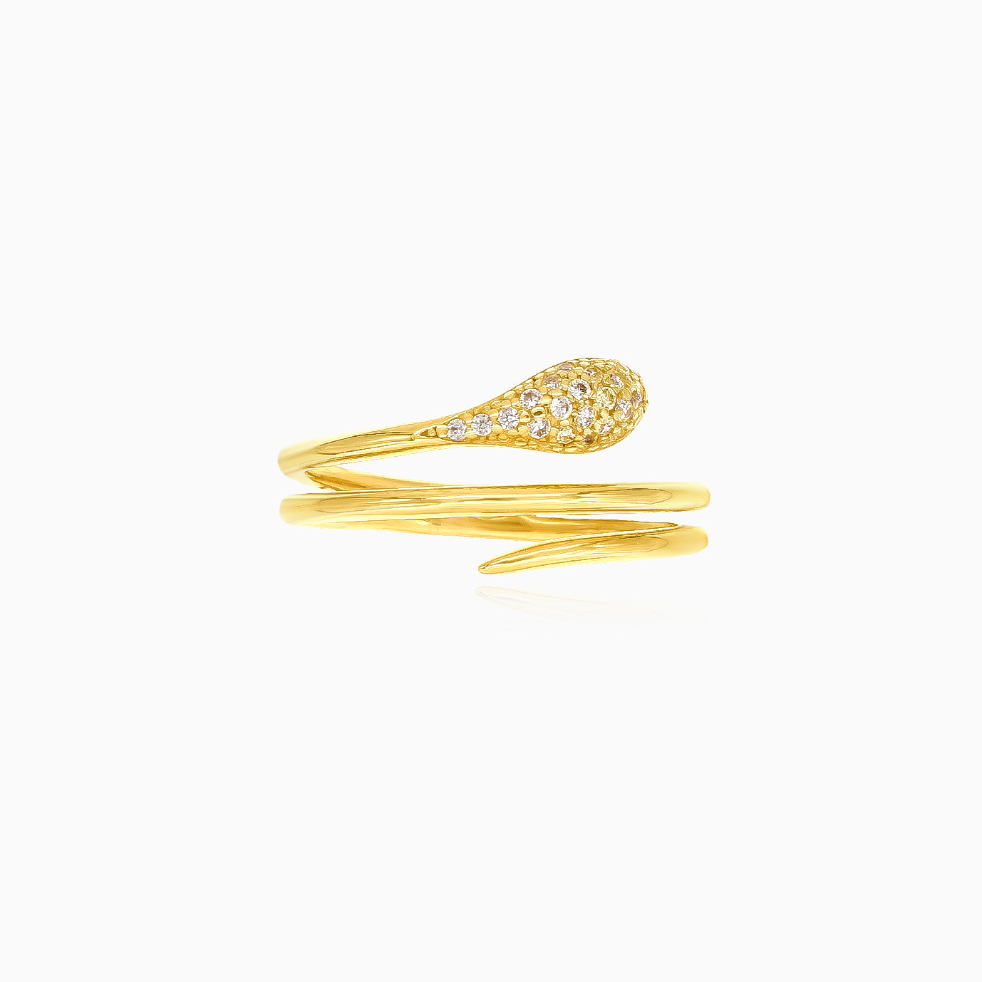 Vylepšete svůj vzhled dámským prstenem ze 14kt žlutého zlata s průhlednými kubickými zirkony v kulatém jemném stupňovitém výbrusu a stylovým designem inspirovaným zvířaty.