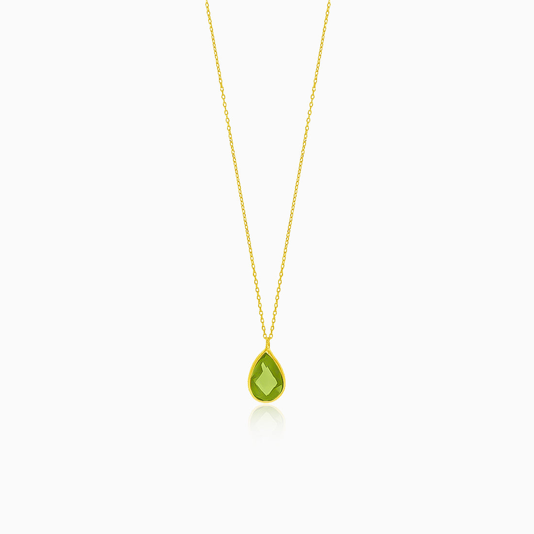 Vyrobeno z 14kt žlutého zlata, tento elegantní náhrdelník má přívěsek ve tvaru kapky s vltavínem. Náhrdelník má bezpečné zapínání kroužek s pružinou.