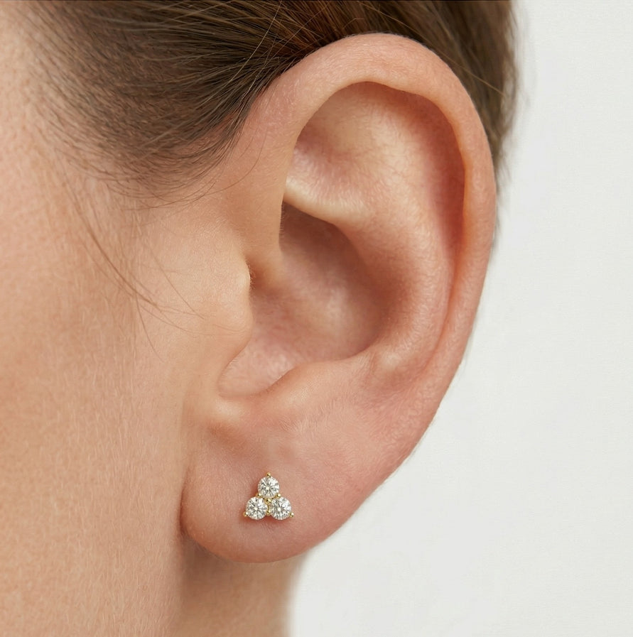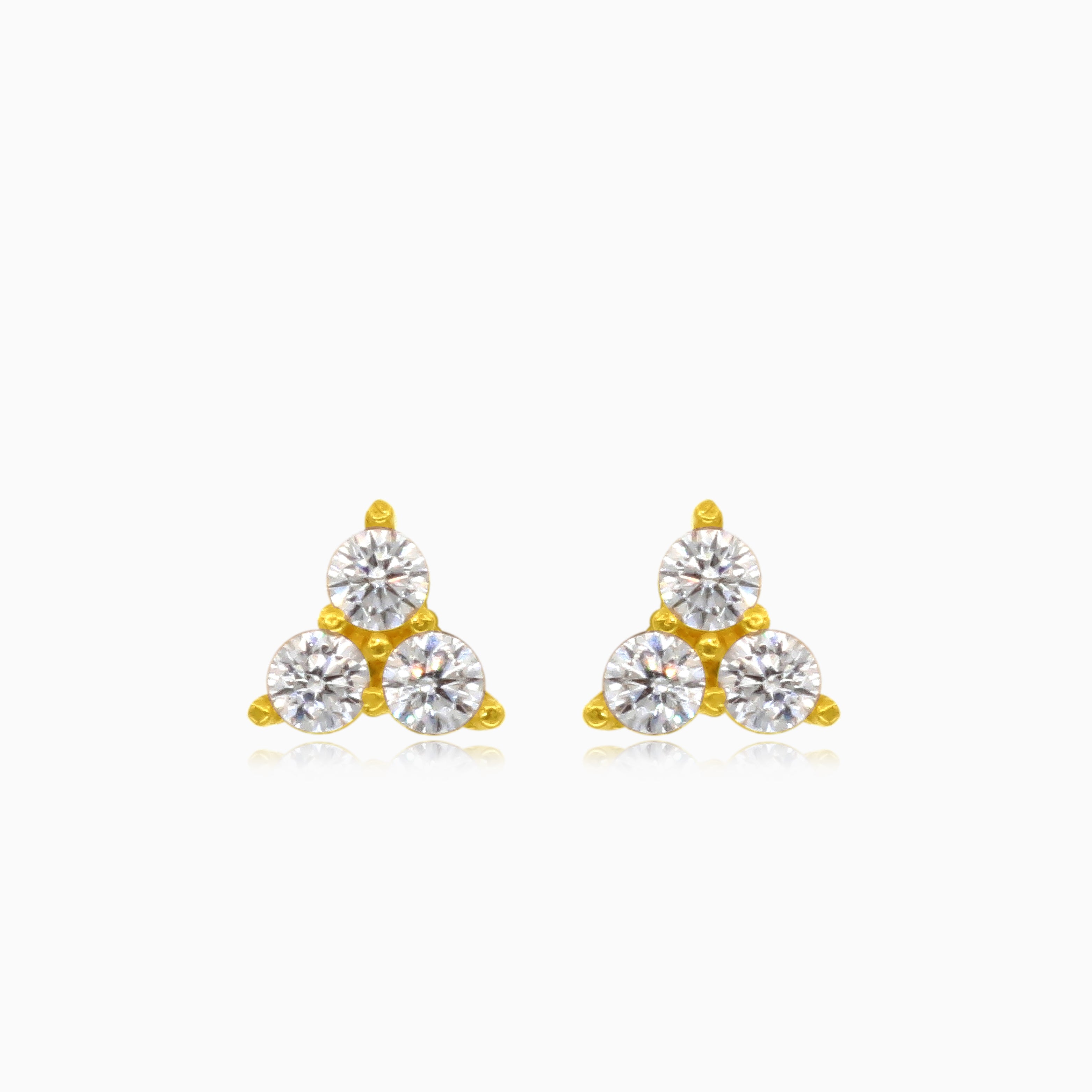 Zářivé náušnice ze žlutého zlata s čirými zirkony
