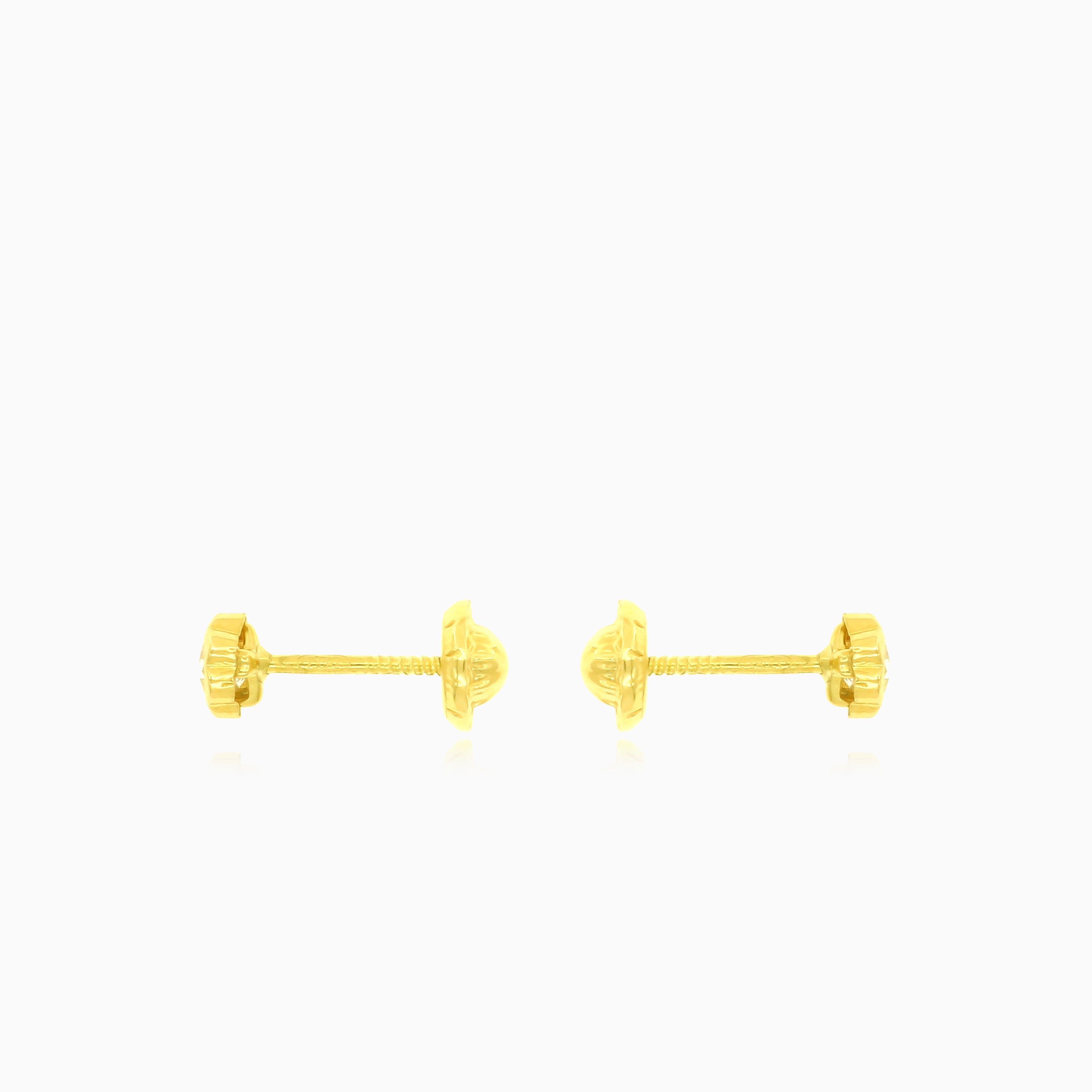 Stylové náušnice ze žlutého 18kt zlata s lesklými průhlednými zirkony, navržené jako kulaté náušnice pro ženy.