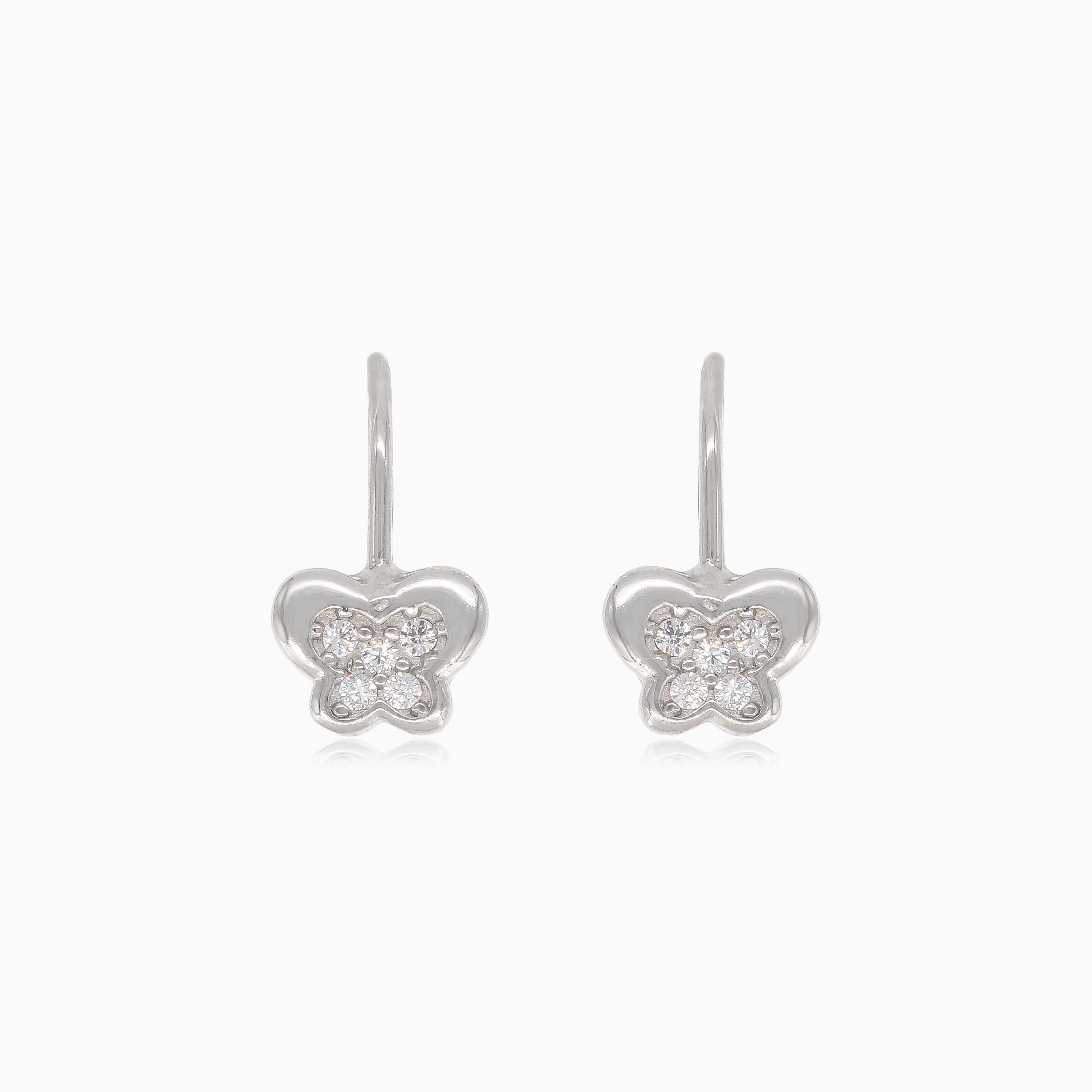 Vylepšete svůj styl těmito okouzlujícími stříbrnými náušnicemi s jemnými motýlími vzory zdobenými třpytivými zirkony, doplněnými bezpečným zapínáním na páčku.