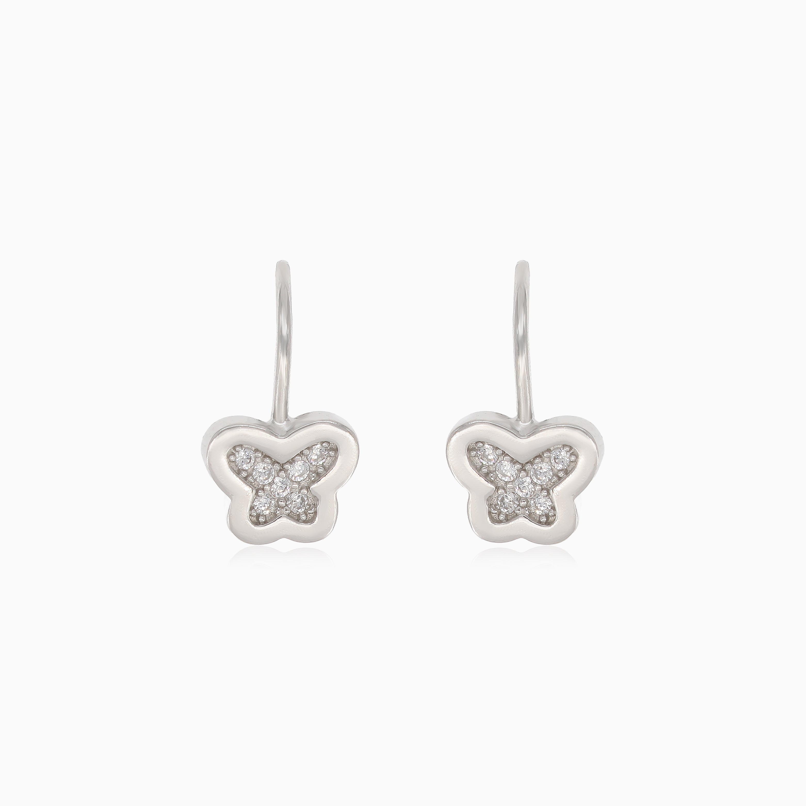 Stříbrné visací náušnice s motýlem s kubickými zirkony