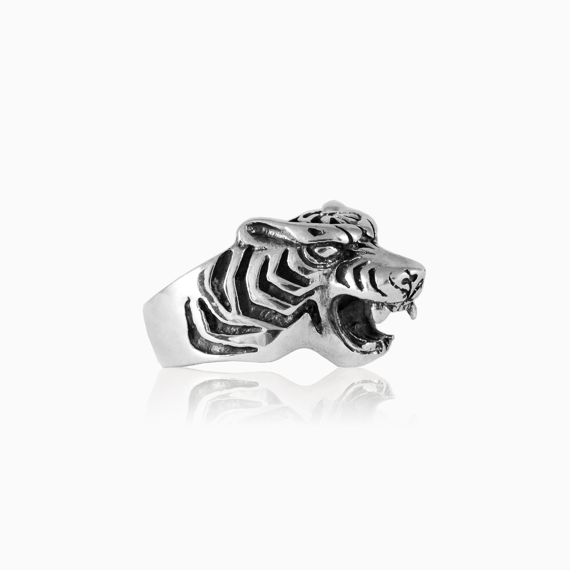 Stříbrný pánský prsten s motivem tygra