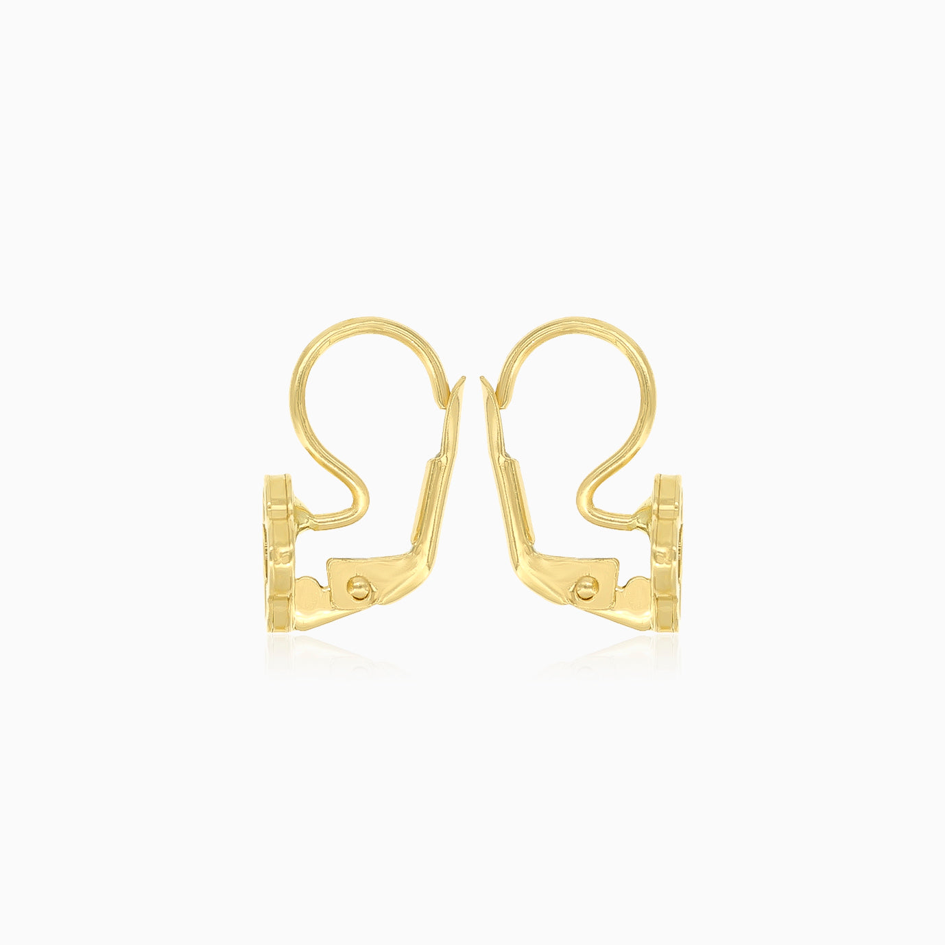 Verleihen Sie Ihrem Stil Ausdruck mit diesen atemberaubenden Tropfenohrringen aus 14 Karat Gelbgold, die flach geschliffenen schwarzen Onyx in Zargenfassung präsentieren. Das filigrane Kleeblatt-Design verleiht jedem Outfit eine elegante Note und sorgt dank Klappverschluss für sicheren und bequemen Halt.