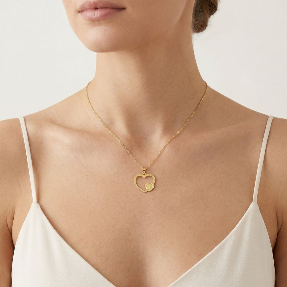 Gelbgold-Anhänger mit offenem Herz und aufgepolstertem Herz