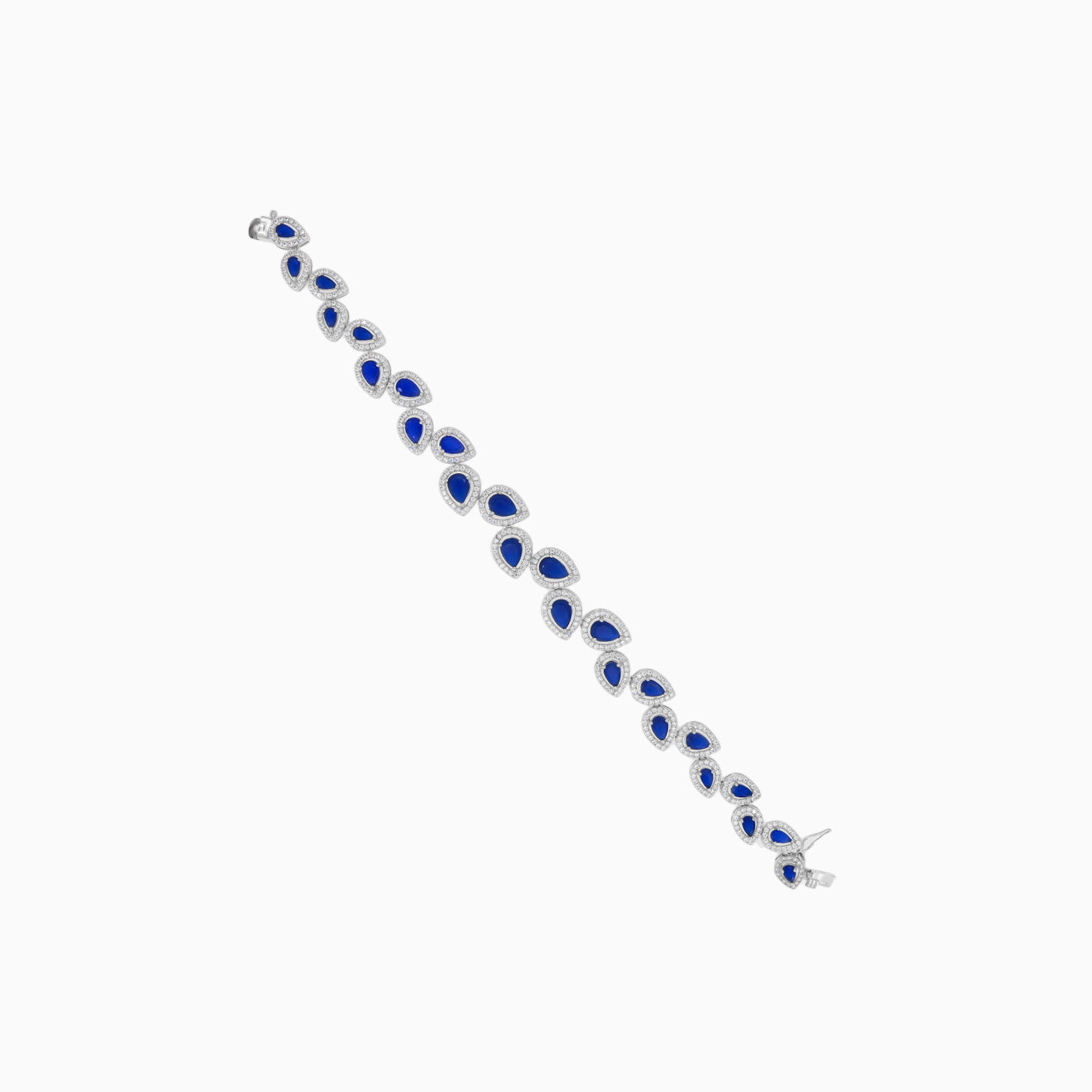 Steigern Sie Ihre Eleganz mit diesem Armband aus Sterlingsilber, das tropfenförmig fein facettierte synthetische Saphire zeigt, umgeben von einem funkelnden Zirkonia-Halo. Die Krappenfassung und das Kastenschloss garantieren Haltbarkeit und Komfort und machen es zu einer strahlenden Wahl für jeden Anlass.