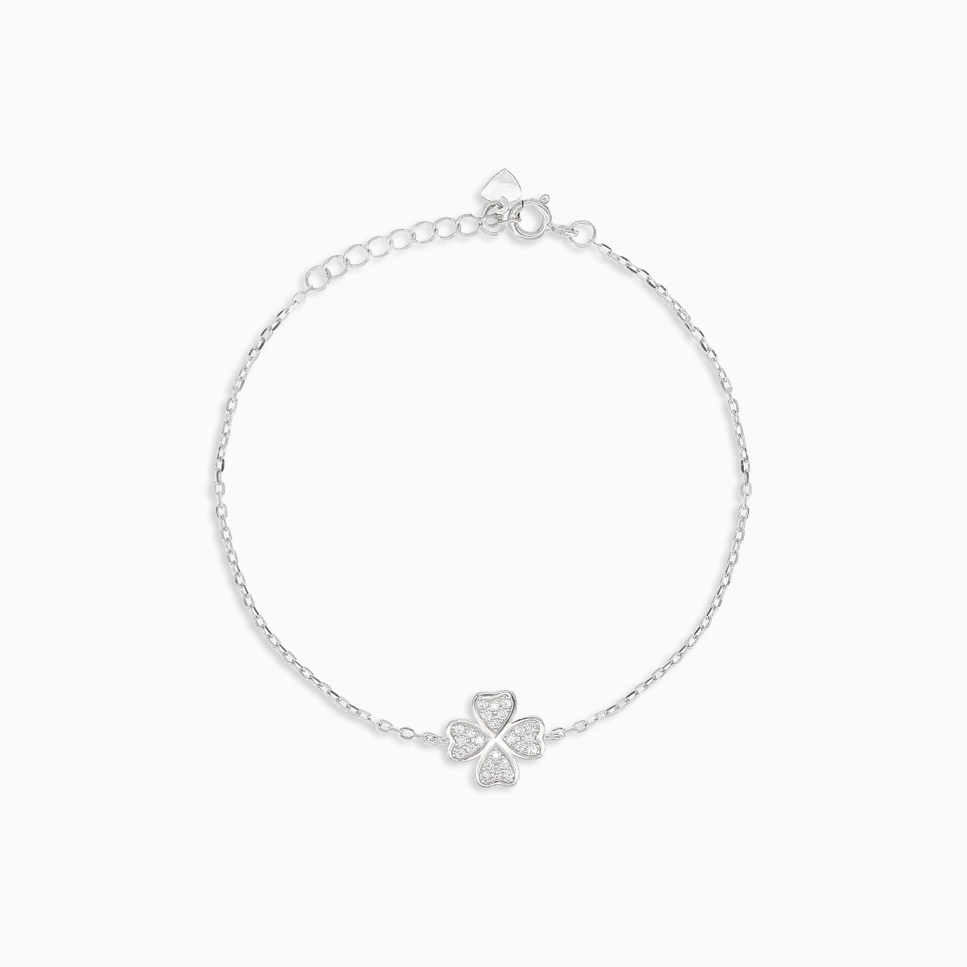 Verleihen Sie Ihrem Stil eine besondere Note mit unserem eleganten Silber-Kettenarmband, das mit beeindruckenden Kleeblatt-Charm-Anhängern aus Zirkonia in Krappenfassung verziert ist und mit einem Federing-Verschluss gesichert wird.
