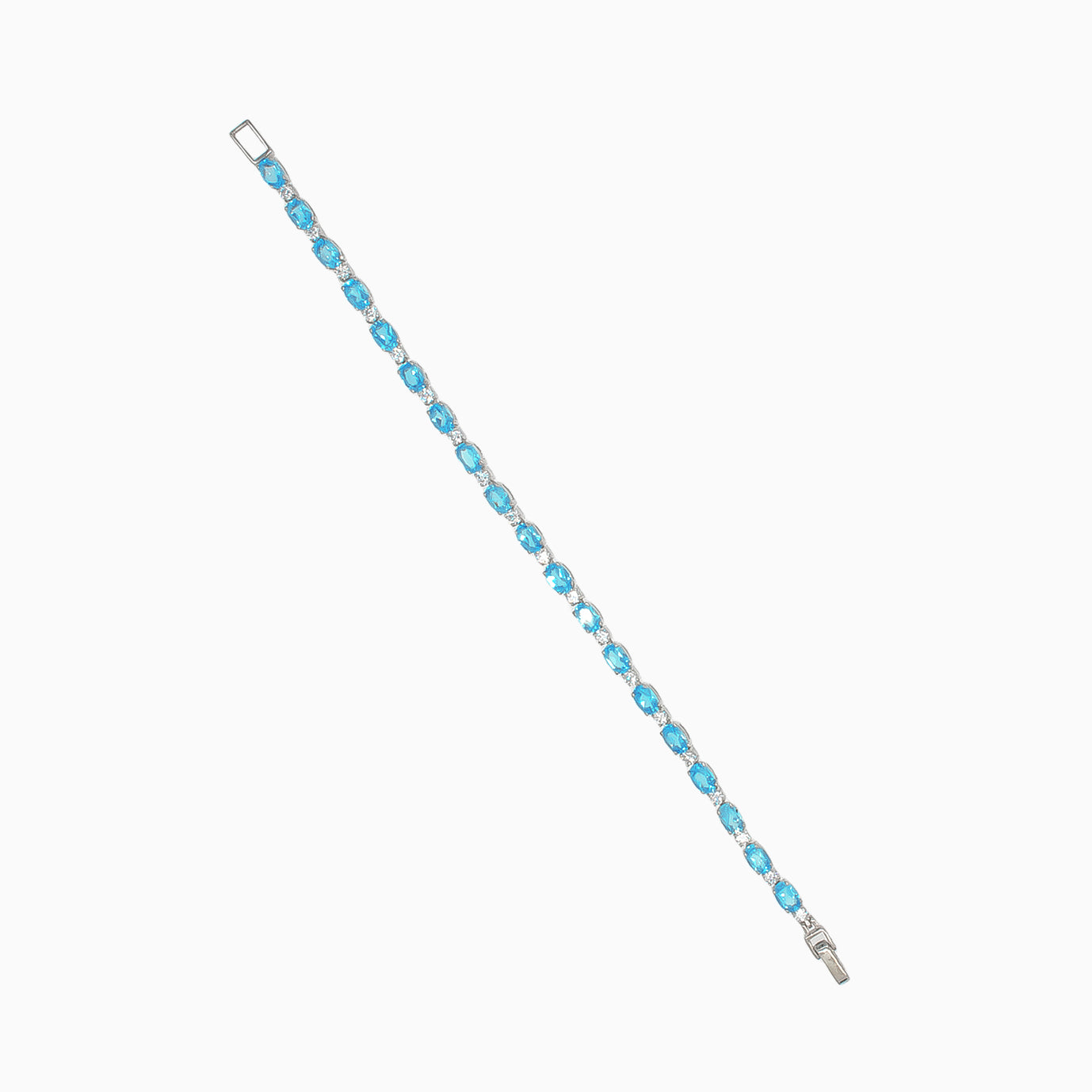 Tennisarmband aus Silber mit ovalen Topas-Steinen, zwischen denen runde Zirkonia platziert sind. Wird mit einem speziellen Verschluss geliefert.