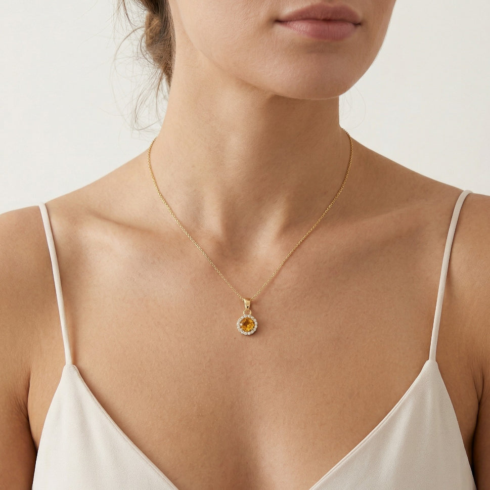 Citrin- und Zirkonia-Anhänger aus Gelbgold