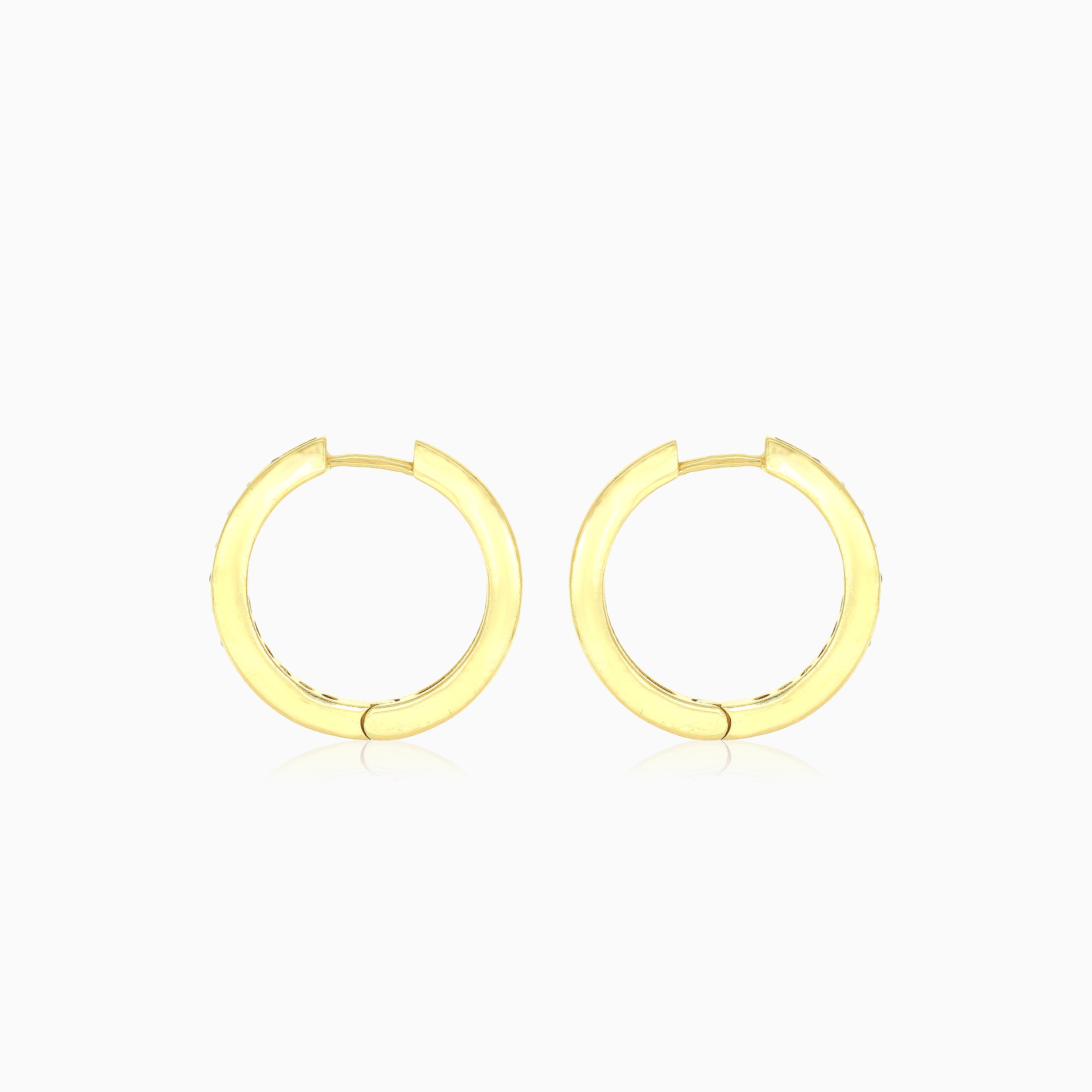 Verleihen Sie Ihrem Look einen Hauch von Eleganz mit unseren Garnet Rund-Hoop-Ohrhängern. Gefertigt aus 14-karätigem Gelbgold mit Punktfassung, zeigen diese Ohrringe runde, fein gestufte Granate und verfügen über sichere Huggie-Verschlüsse für einen bequemen Sitz.